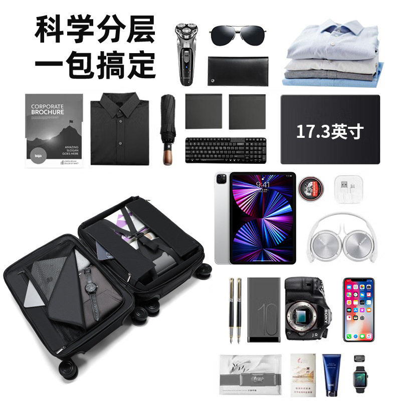 18寸小型登机行李箱可上飞机免托运短途旅行出差20前置开口拉杆箱