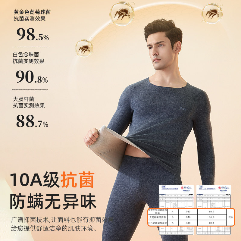天猫猫人保暖内衣男士无痕蓄热羊绒蚕丝抗菌除螨秋冬秋衣秋裤套装新款