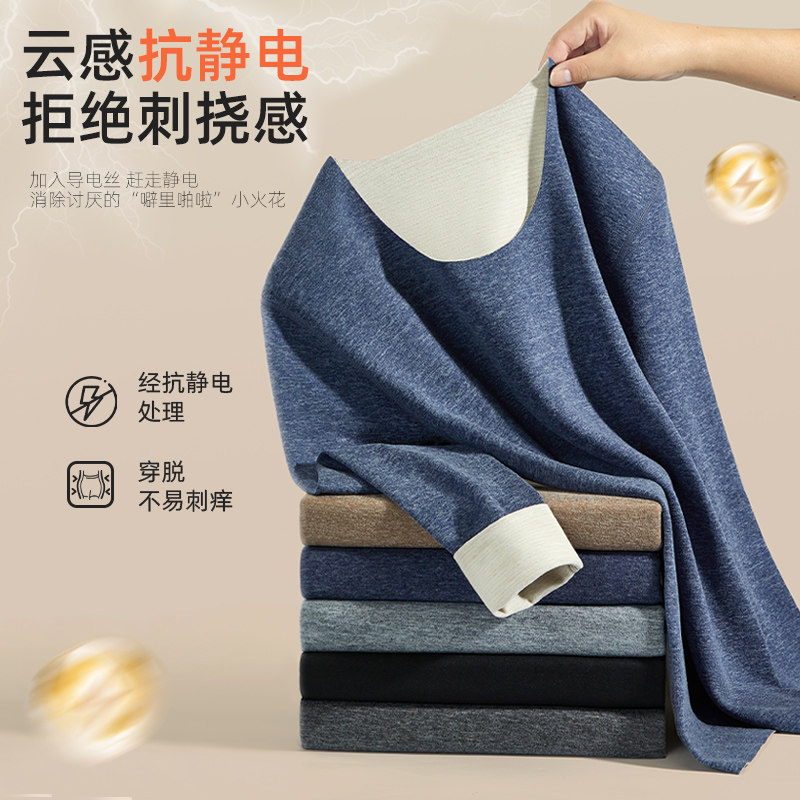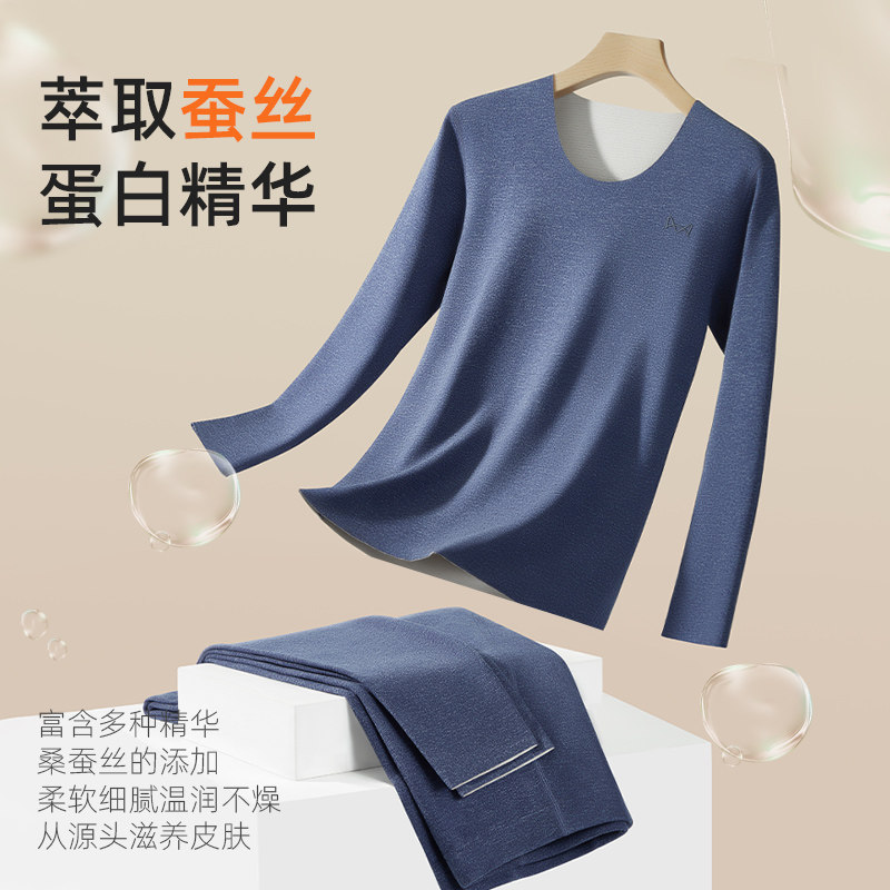 天芬腾羊毛蚕丝保暖内衣男士加厚加绒发热秋衣秋裤套装打底防寒冬季