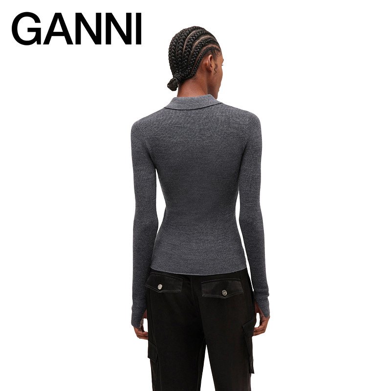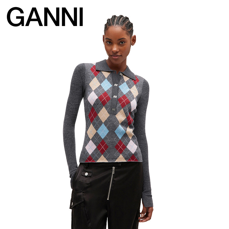 天猫GANNI女装 撞色菱格polo领上衣内搭针织衫 K2601920