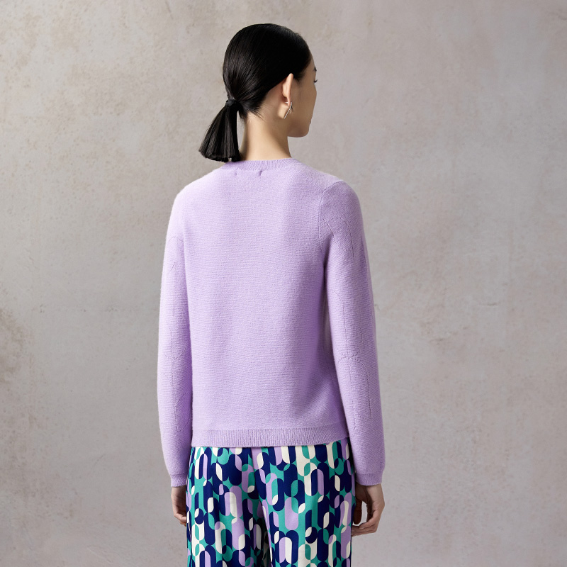 皮皮狗春季新款女士圆领长袖山羊绒套衫,采用优质山羊绒面料,触感柔软细腻,亲肤保暖,轻盈透气。简约圆领设计,经典百搭,轻松修饰颈部线条;合身剪裁搭配长袖版型,贴合身形又不失舒适感,适合春季单穿或作为内搭。整体风格时尚简约,色彩柔和雅致,无论是搭配外套、风衣还是裙装,都能展现优雅知性气质。精细针织工艺确保版型挺括、不易变形,久穿如新。这款套衫集舒适、质感与实穿性于一体,是春季衣橱不可或缺的时尚单品,为现代女性打造温柔而自信的日常穿搭。