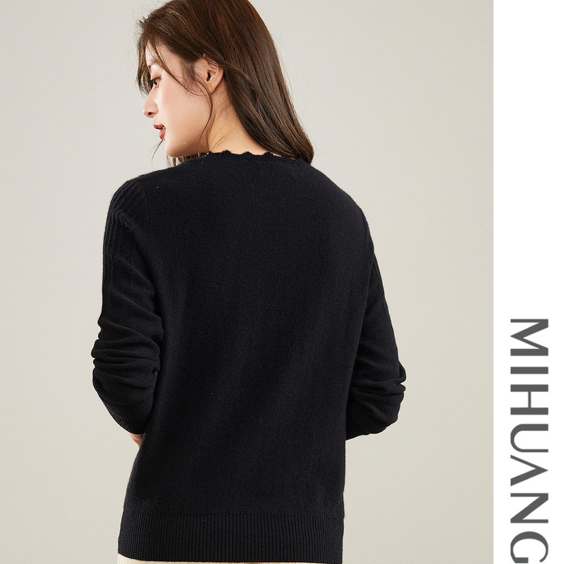 【XIAOLI筱李】秋冬新品手钩领圈装饰羊绒针织开衫上衣女