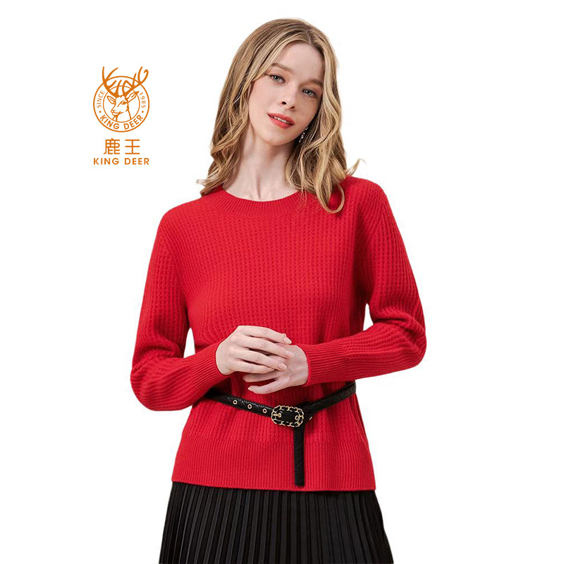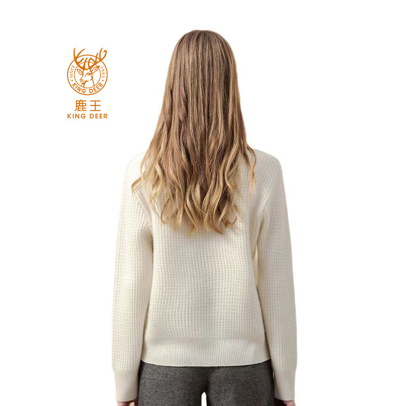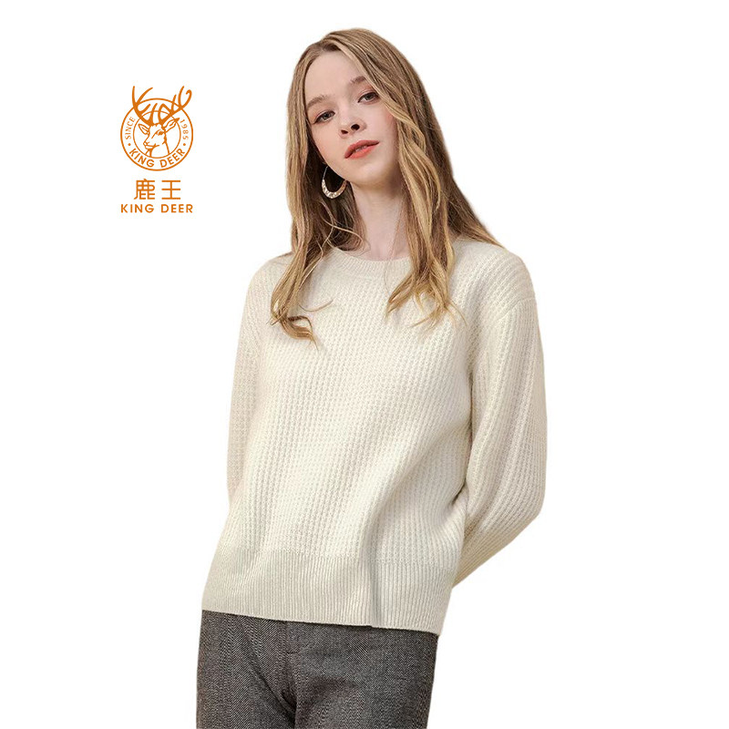 淘宝鹿王女装山羊绒衫圆领长袖套头白色休闲针织2025秋冬新款厚款毛衣