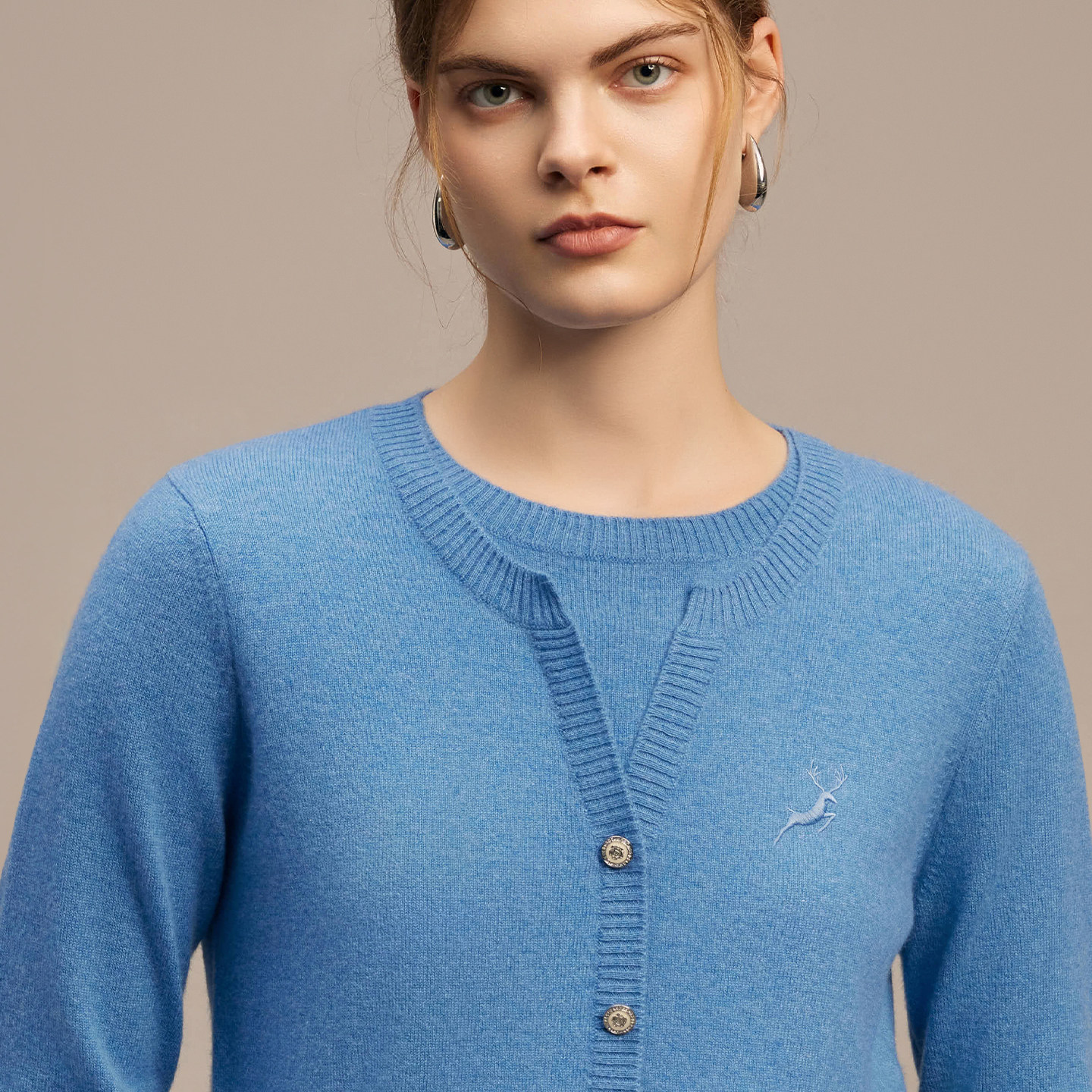 鹿王2025年秋冬新款100%山羊绒衫,专为优雅女性打造。采用优质山羊绒面料,触感柔软细腻,保暖性卓越,轻盈贴肤不臃肿。双圆领设计经典百搭,假开衫款式增添层次感,轻松实现内搭或单穿的多重穿搭可能。精细针织工艺,版型修身显瘦,贴合身形又不失舒适。无论是搭配大衣、风衣,还是作为打底衫穿着,都能展现温柔知性气质。经典纯色设计,简约大方,适合多种场合。鹿王专注羊绒品质,匠心呈现秋冬温暖与时尚的完美融合,是都市女性衣橱不可或缺的保暖单品。