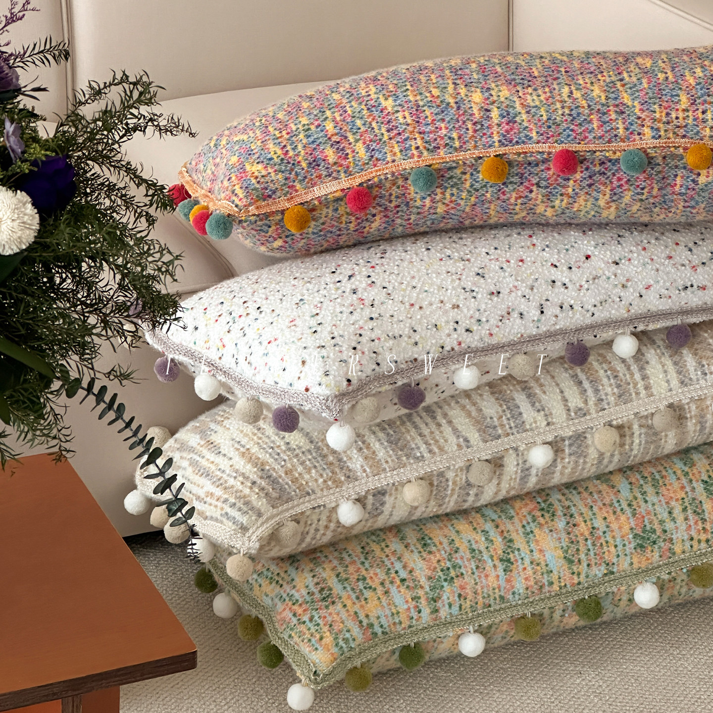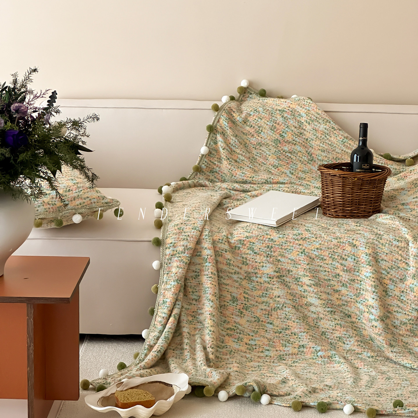 淘宝Tender|法式秋冬彩虹球球毛毯办公室盖毯少女韩系ins沙发空调毯子