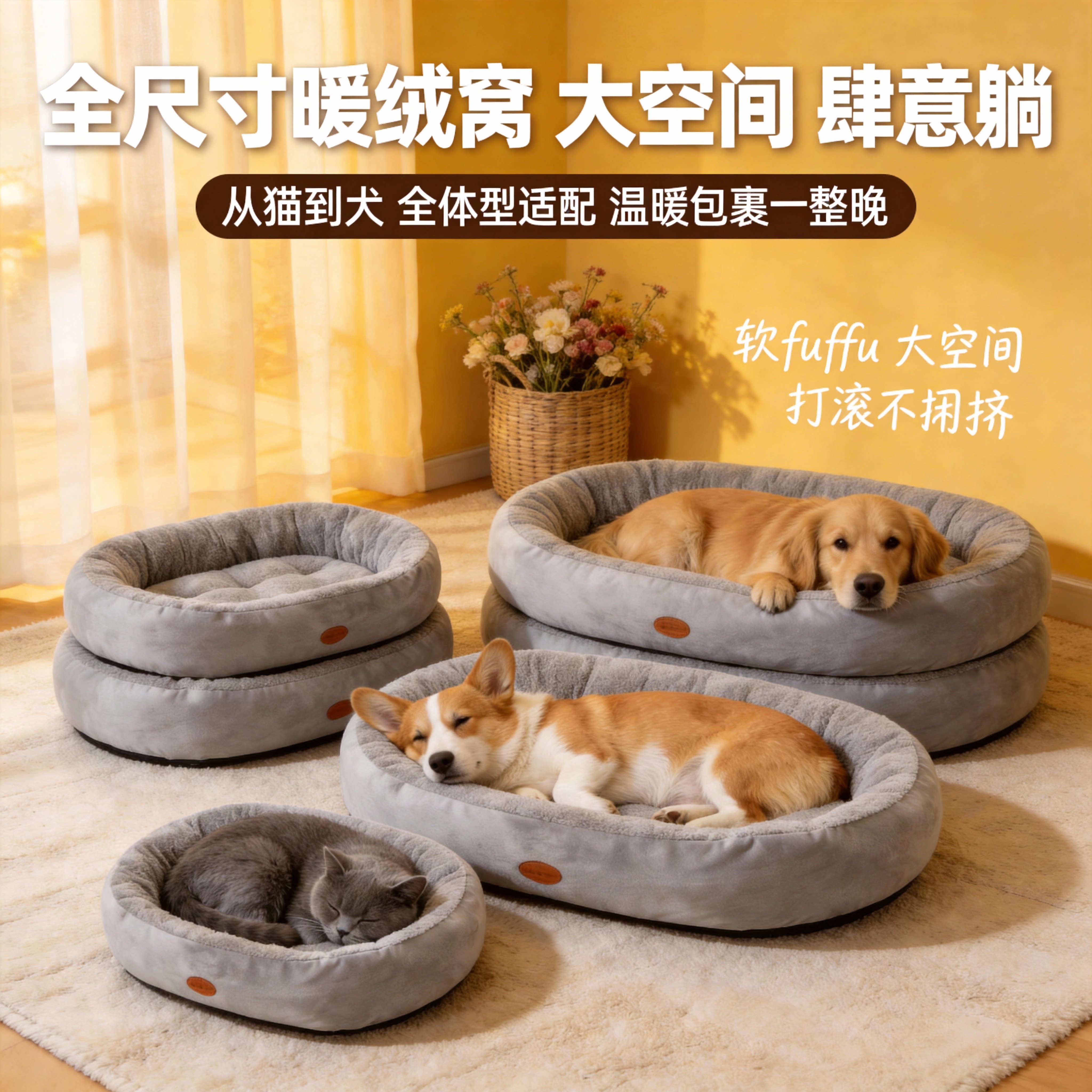 淘【猫狗小窝】狗窝猫窝椭圆窝加厚冬季保暖冬天大中小型犬睡窝狗垫