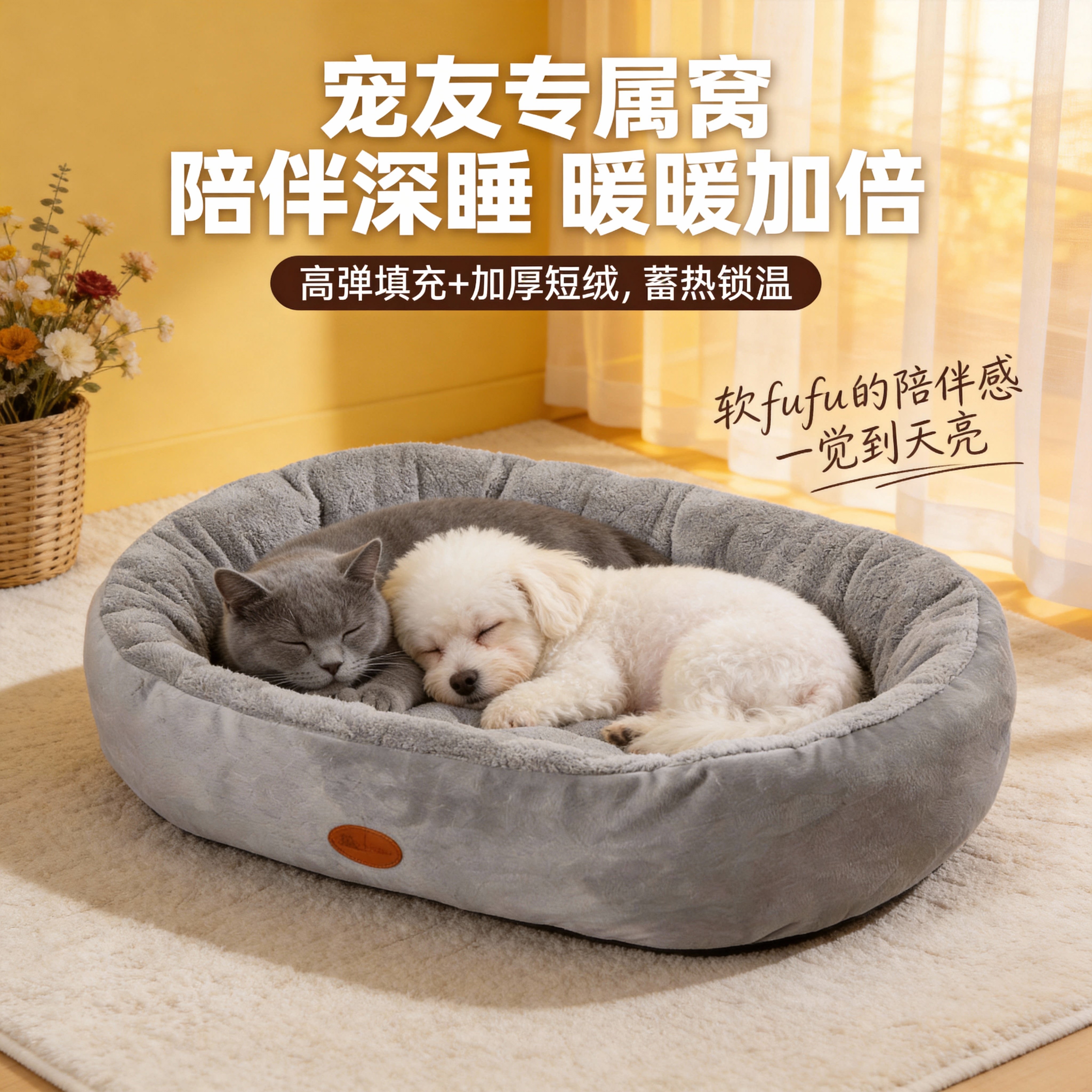 【猫狗小窝】狗窝猫窝椭圆窝加厚冬季保暖毛绒宠物窝冬天大号睡窝