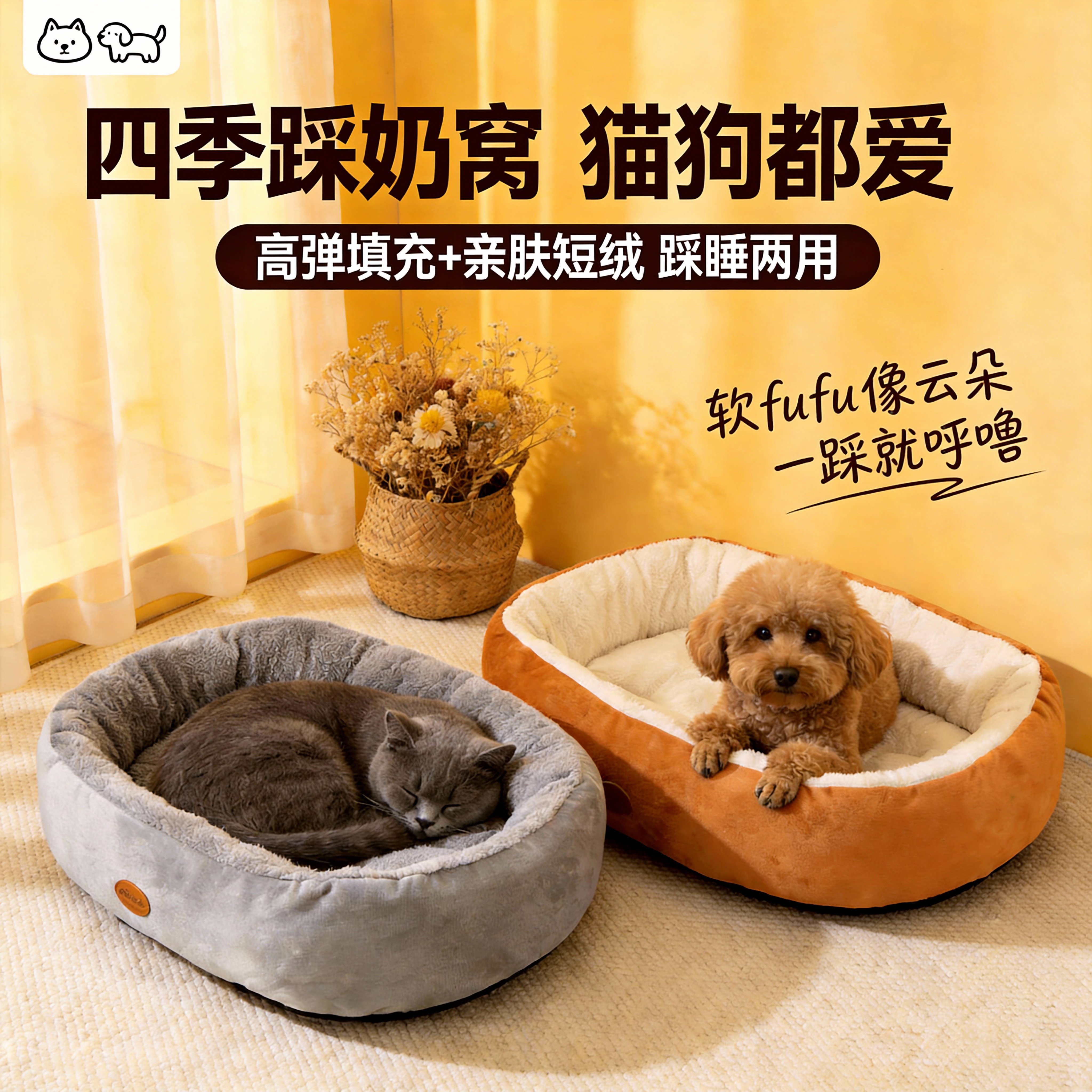 淘新款狗包边加高加厚方窝四季通用猫咪牛津布耐磨窝垫小型猫狗通用
