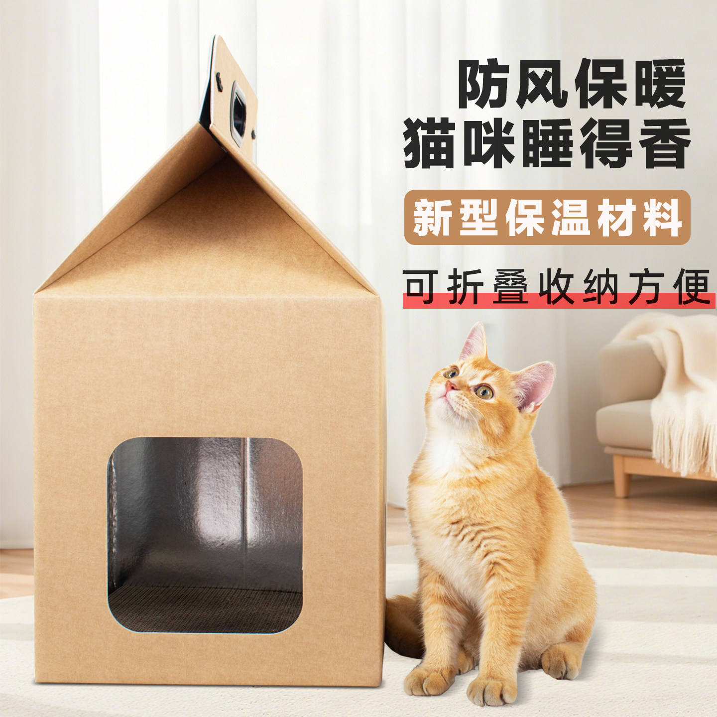淘宝猫抓板猫窝一体保暖耐磨防水大号猫狗产房瓦楞纸箱磨爪玩具宠物窝