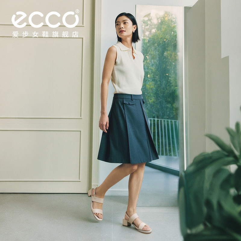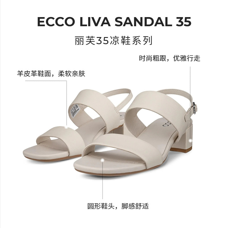 天猫ECCO爱步女鞋 2026春夏新款粗跟外穿一字带凉鞋 丽芙35 250303