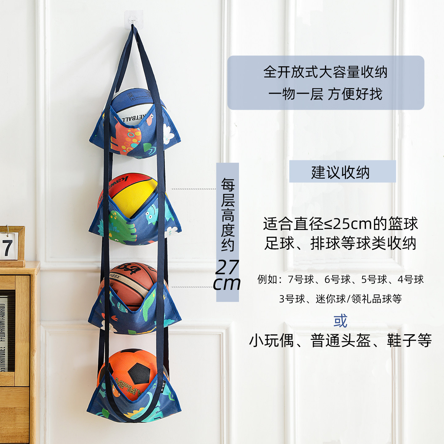 淘宝球类收纳挂袋家用放篮球的球架儿童玩偶足球摆放架子门后收纳神器