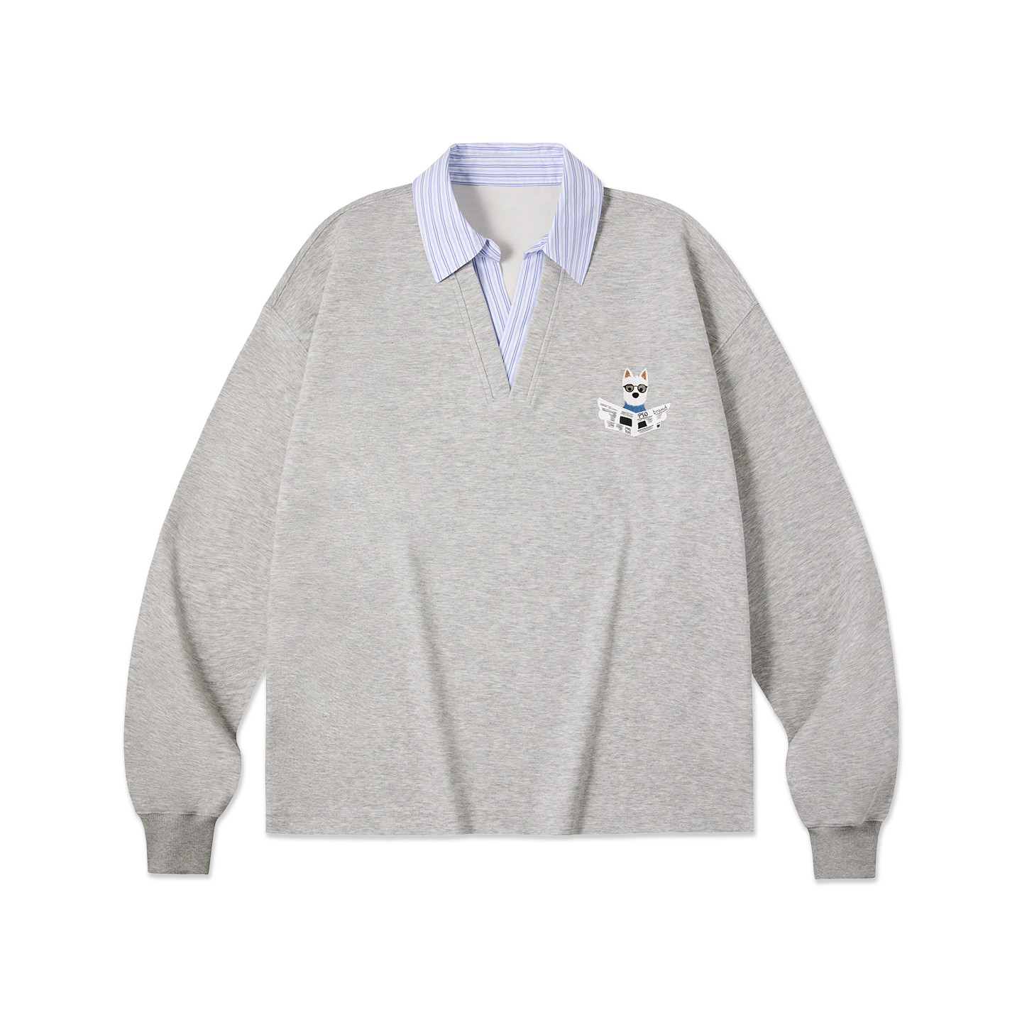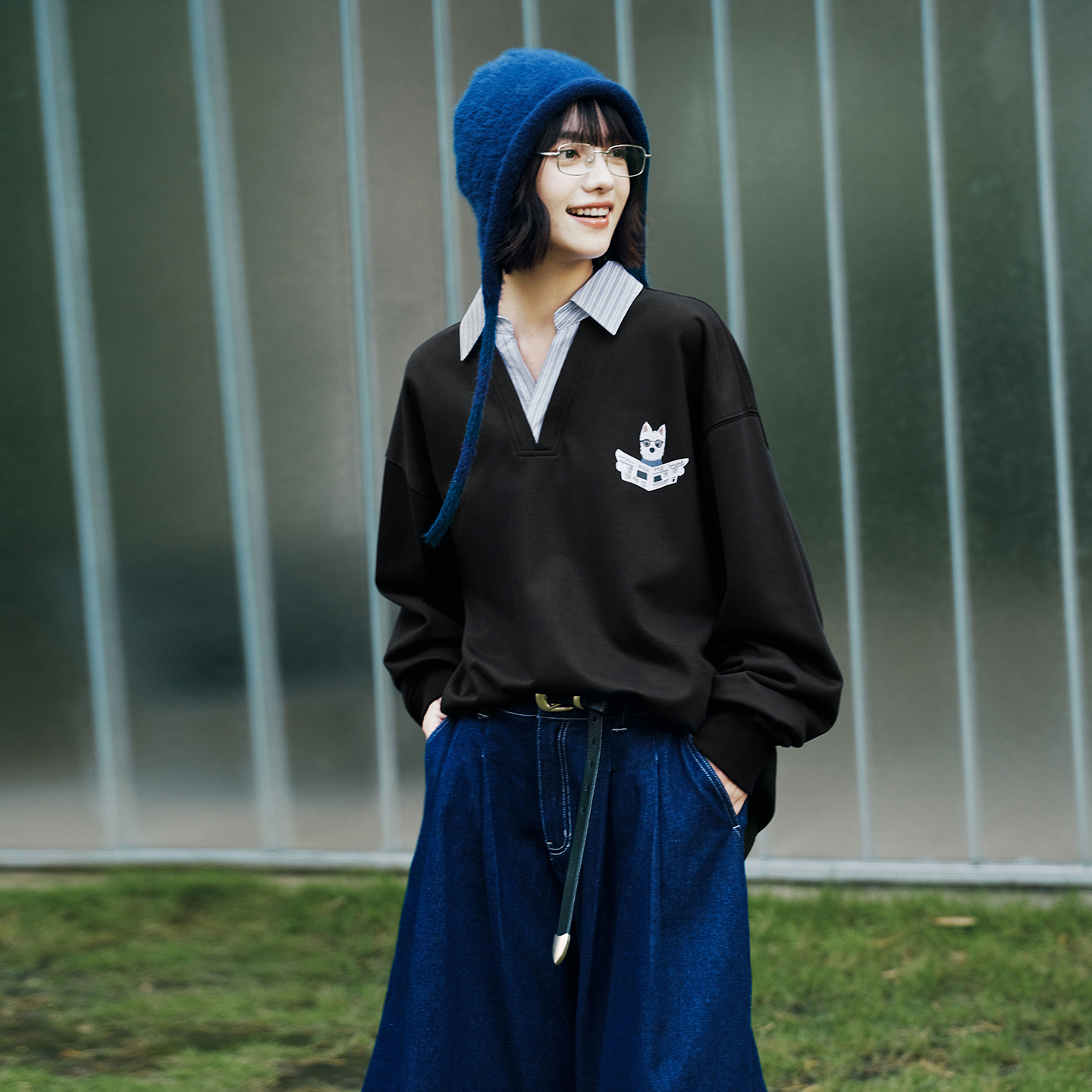 淘宝PSO Brand男装女装假两件条纹V领POLO卫衣男款宽松长袖外套情侣装