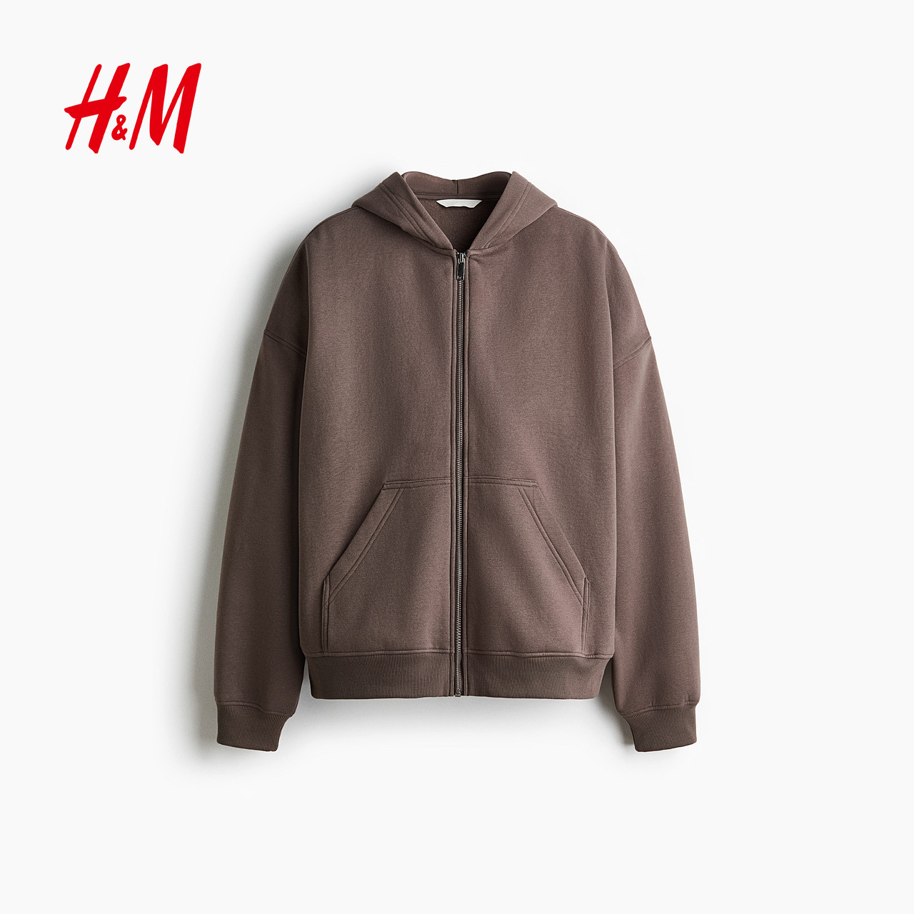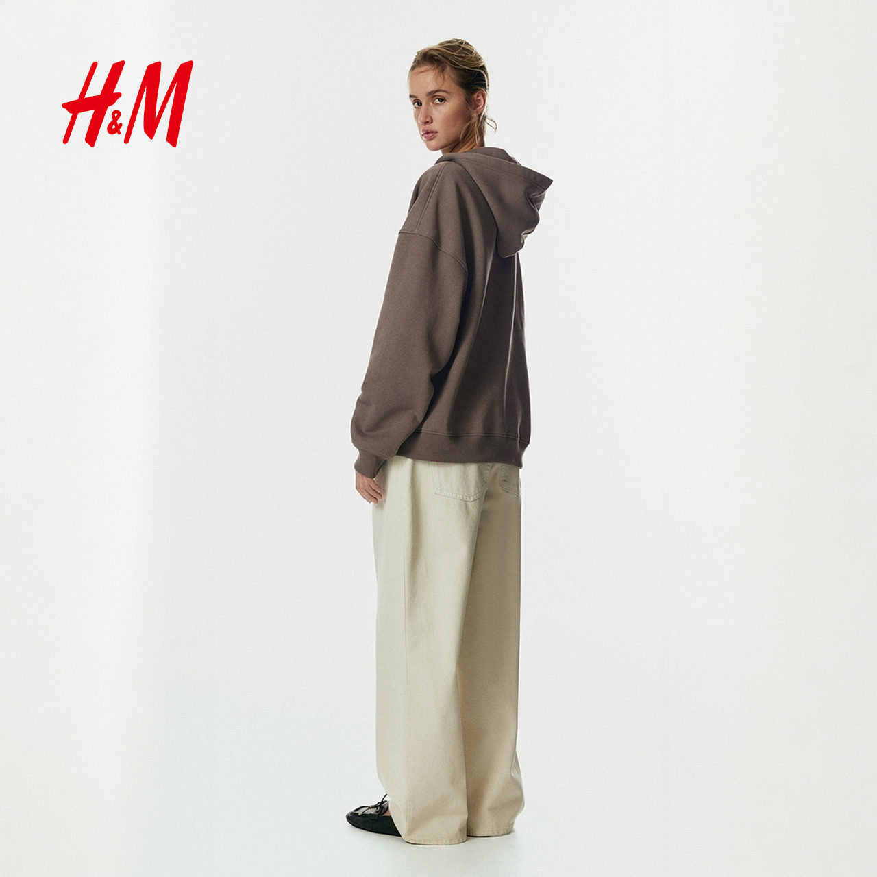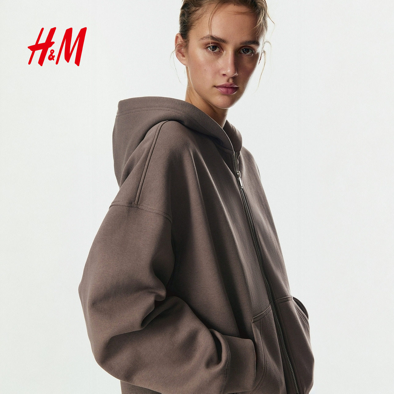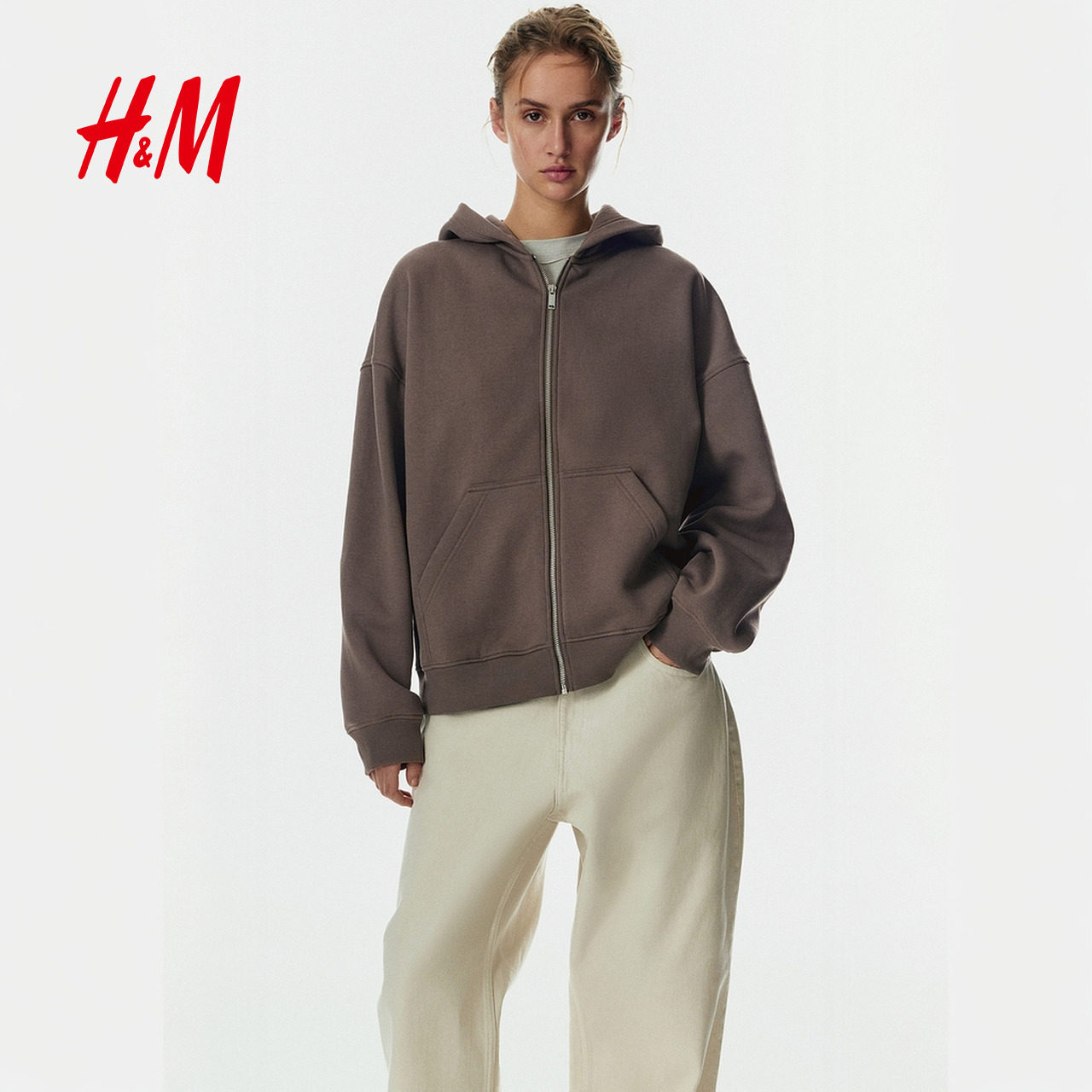 HM女装卫衣2026春季新款大廓形宽松拉链连帽衫连帽外套1234775