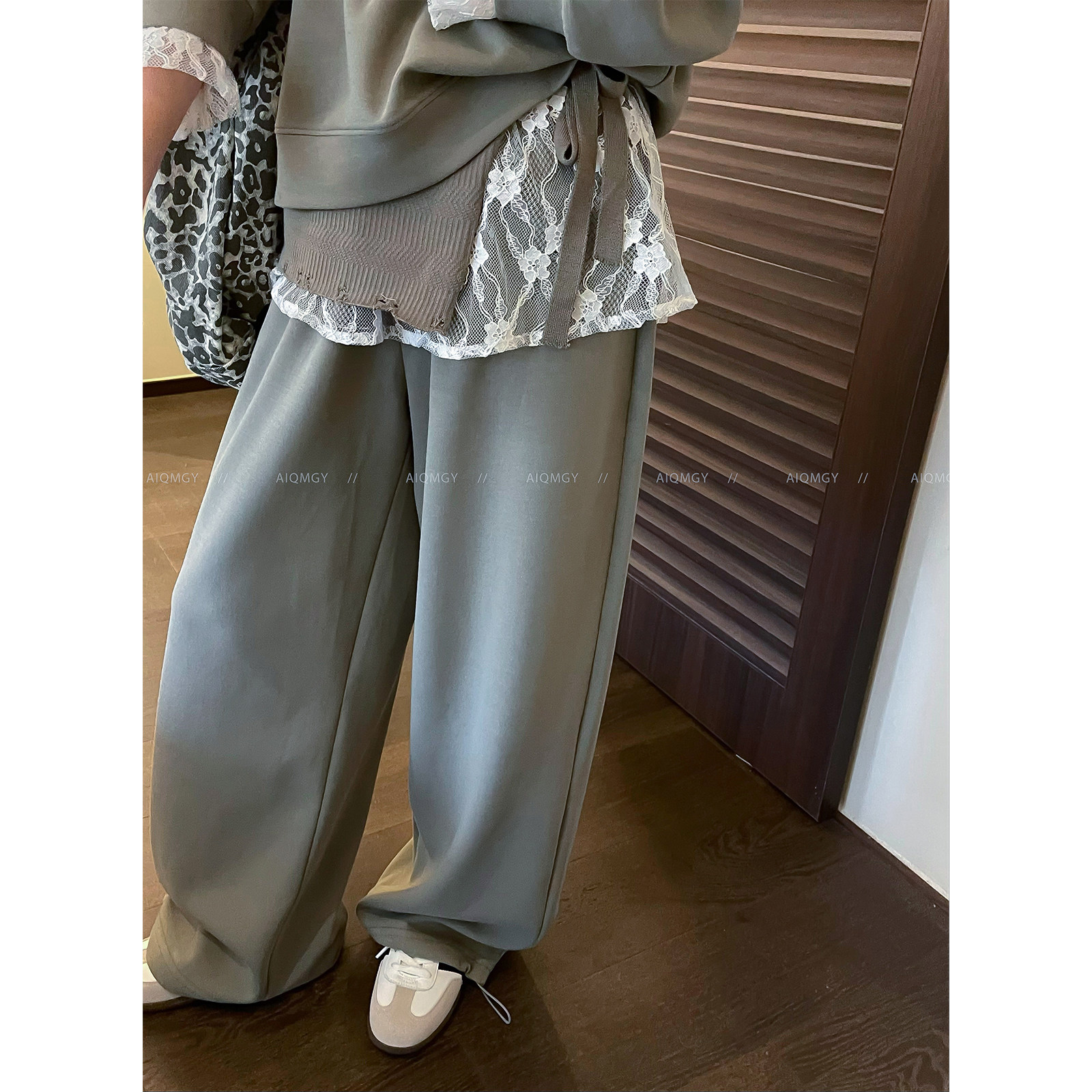 韩系早秋穿搭套装气质减龄连帽针织卫衣上衣休闲宽松阔腿裤两件套