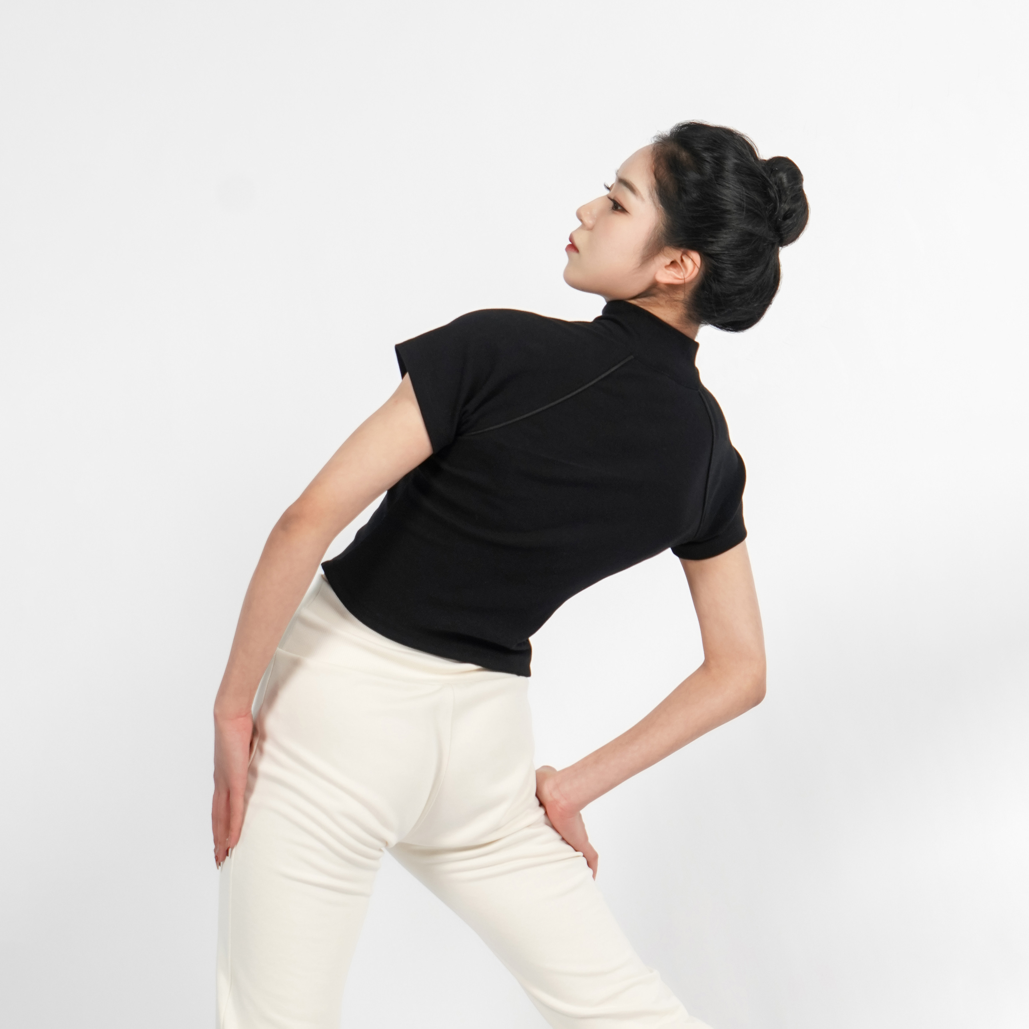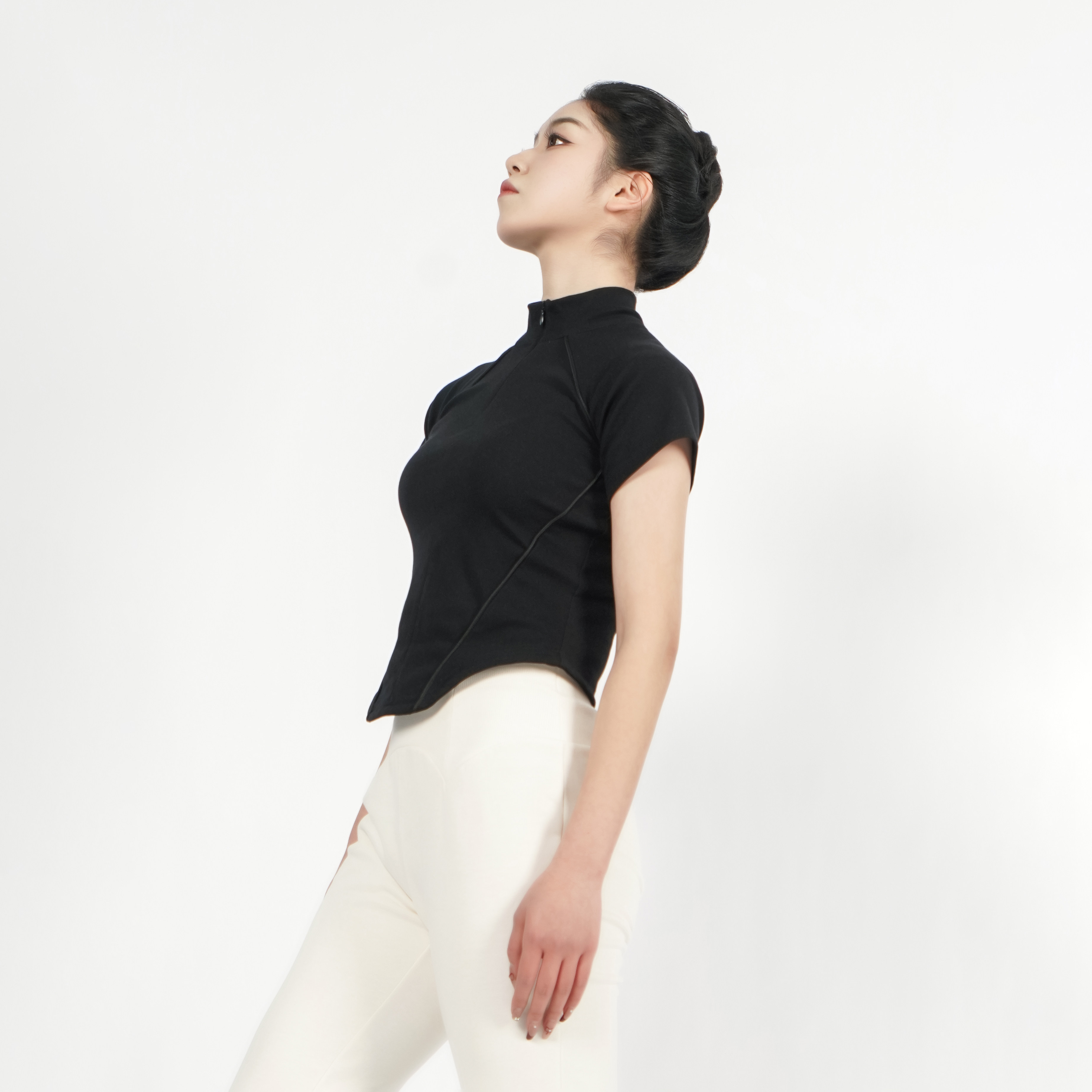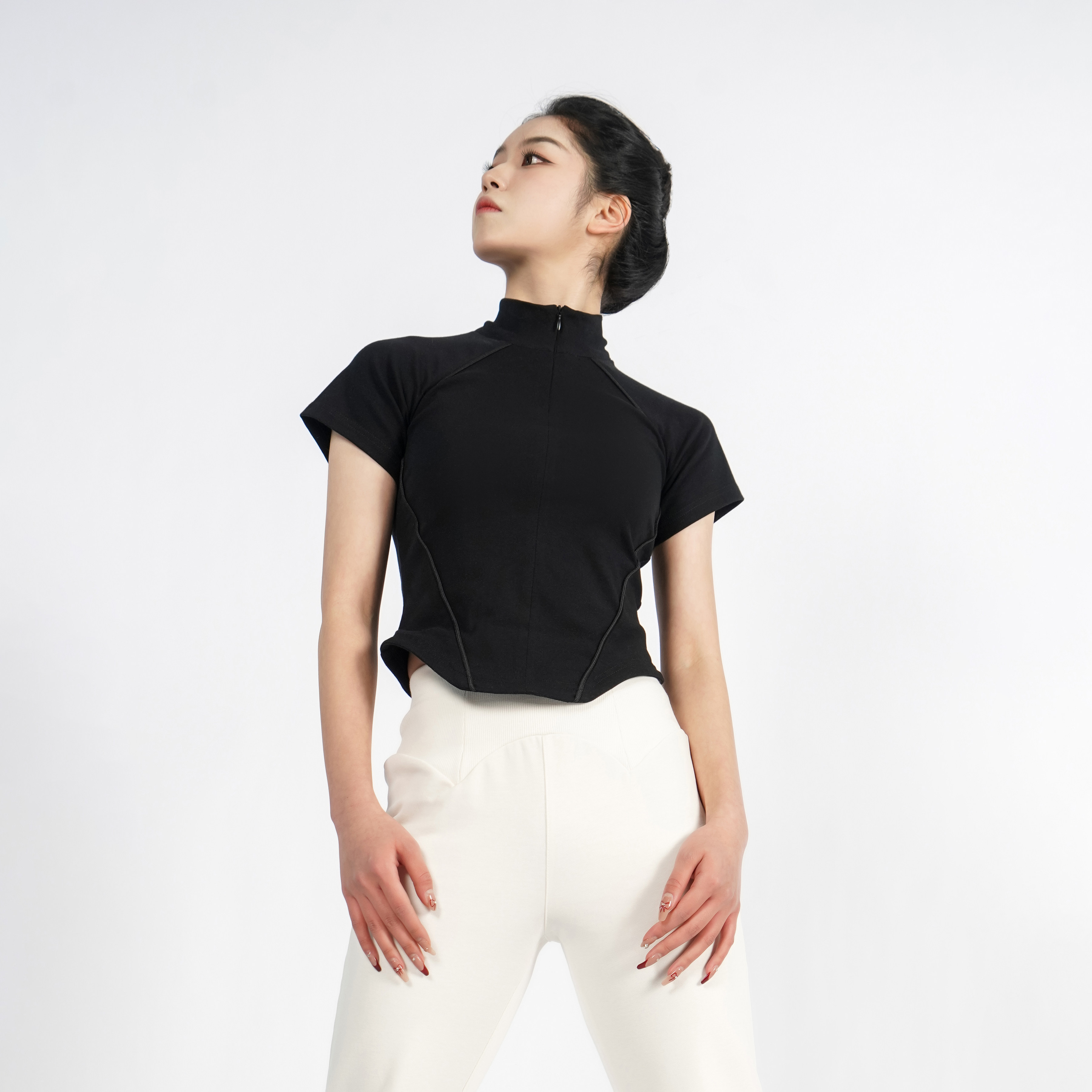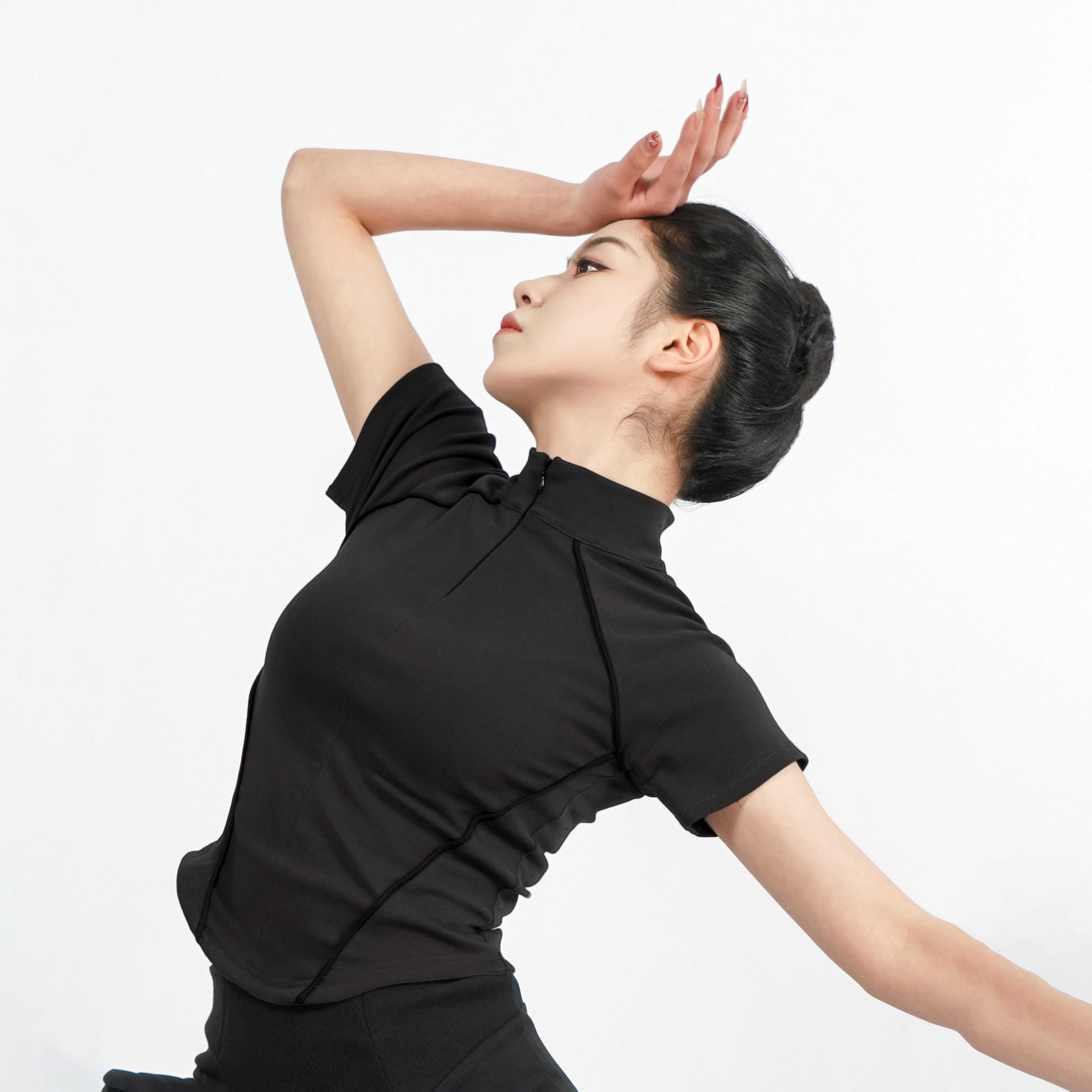 涂一TF0108女式现代舞蹈练功服,采用高品质弹力面料,贴身舒适、透气排汗,专为舞蹈训练与舞台表演设计。经典黑色短袖紧身剪裁,凸显身体线条,提升动作延展性,适合现代舞、瑜伽、艺考等多种场景。高弹面料支持大幅动作,不移位、不束缚,肩部与领口做工精细,耐穿耐洗。简约时尚的设计兼顾专业性与美观度,是舞者日常训练与演出的理想选择。无论是基本功练习还是舞台展示,TF0108都能助力舞者自信展现优美舞姿,是专业舞者与艺术考生的必备单品。