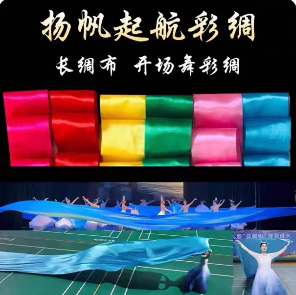 淘湖蓝色绸布扬帆起航大型舞蹈长稠布道具运动会开场舞蓝色绸子彩带