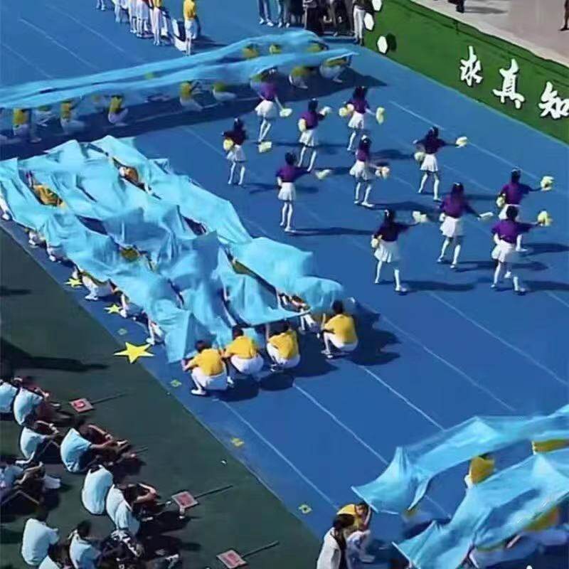 淘宝蓝色舞蹈绸布扬帆起航大型舞蹈道具湖蓝色长绸运动会开幕式道具