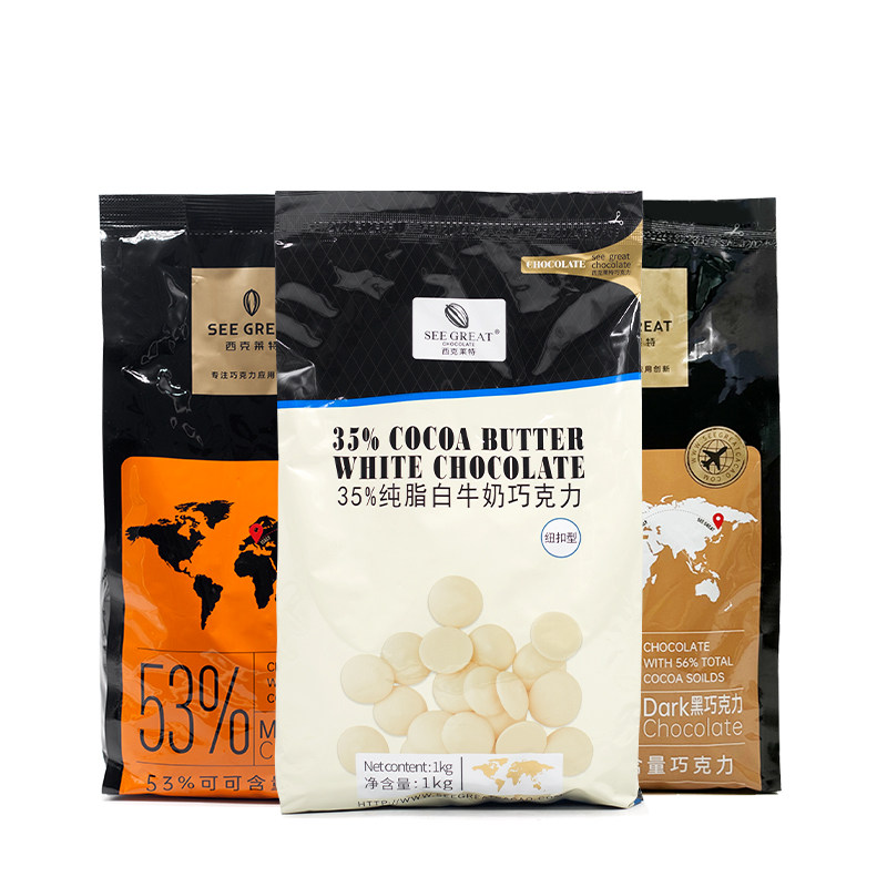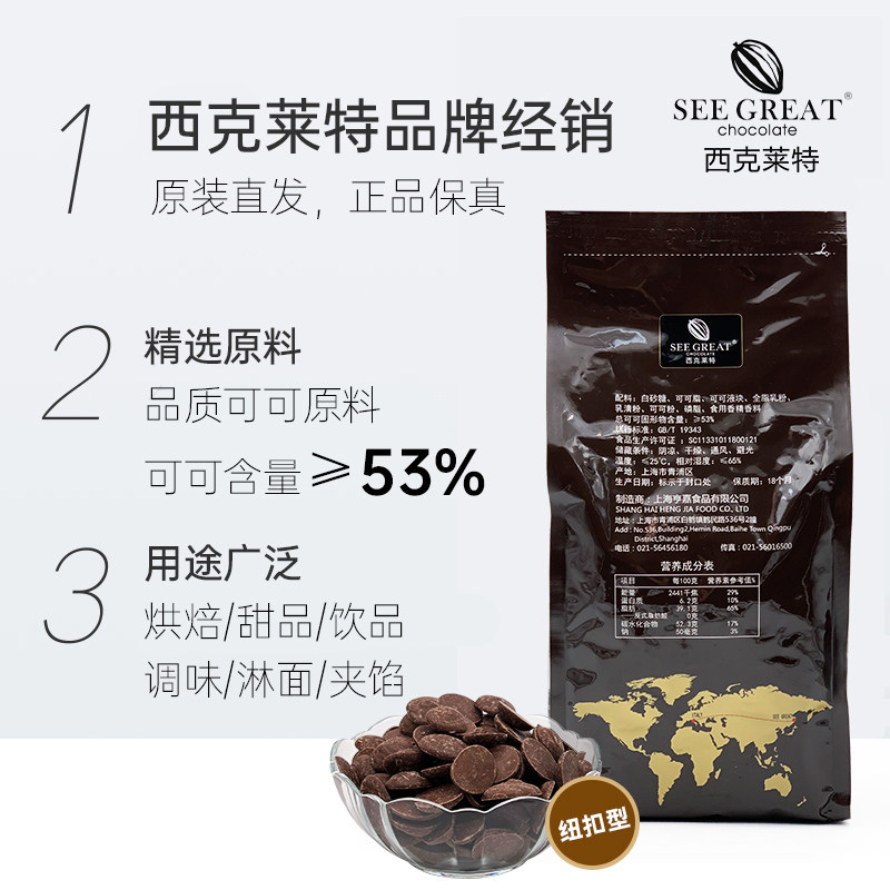 淘宝西克莱特巧克力币纯可可脂纽扣型35%53%56%生巧熔岩黑巧白巧商用