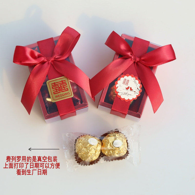 淘宝喜糖成品含糖2粒费列罗巧克力欧式半透明磨砂盒中式订婚宴伴手礼