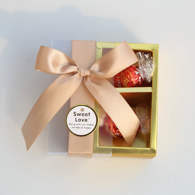 这款喜糖成品精选2粒经典费列罗巧克力,香浓丝滑,寓意甜蜜圆满。采用欧式半透明磨砂盒包装,质感温润,简约中透着高雅,兼具现代审美与中式婚嫁的庄重氛围。盒身设计融合中式元素,适合订婚宴、婚礼等喜庆场合作为伴手礼赠送宾客,既体面又富有心意。整体搭配精致典雅,不仅传递新人幸福美满的祝福,也体现对宾客的诚挚感谢。是传统与现代完美结合的婚礼回礼之选,让每一份甜蜜都承载美好祝愿。