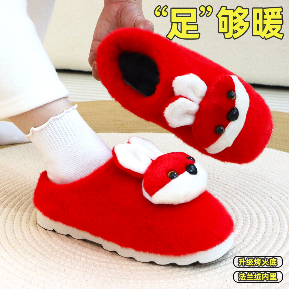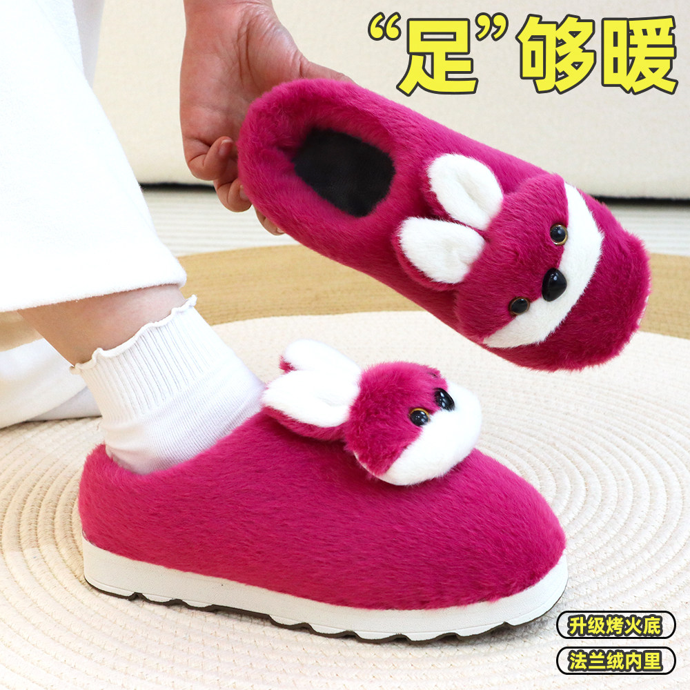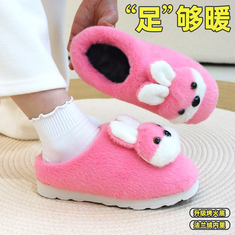 淘宝仿水貂绒可爱兔纯手工保暖棉拖鞋居家男女情侣加厚保暖拖鞋半包跟