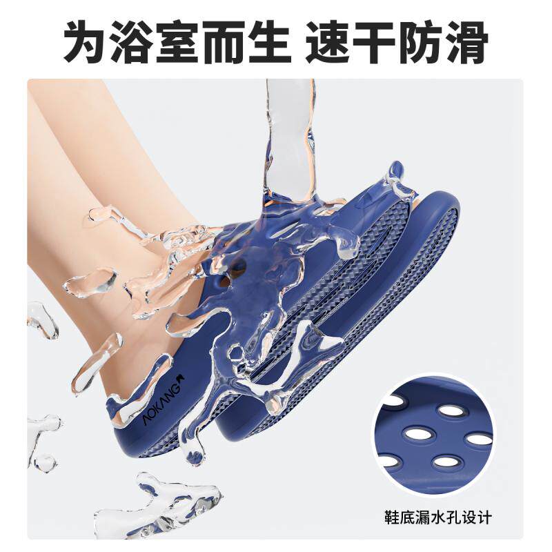 天猫奥康浴室拖鞋男士夏季室内家居洗澡防滑厚底家用漏水速干凉拖鞋女