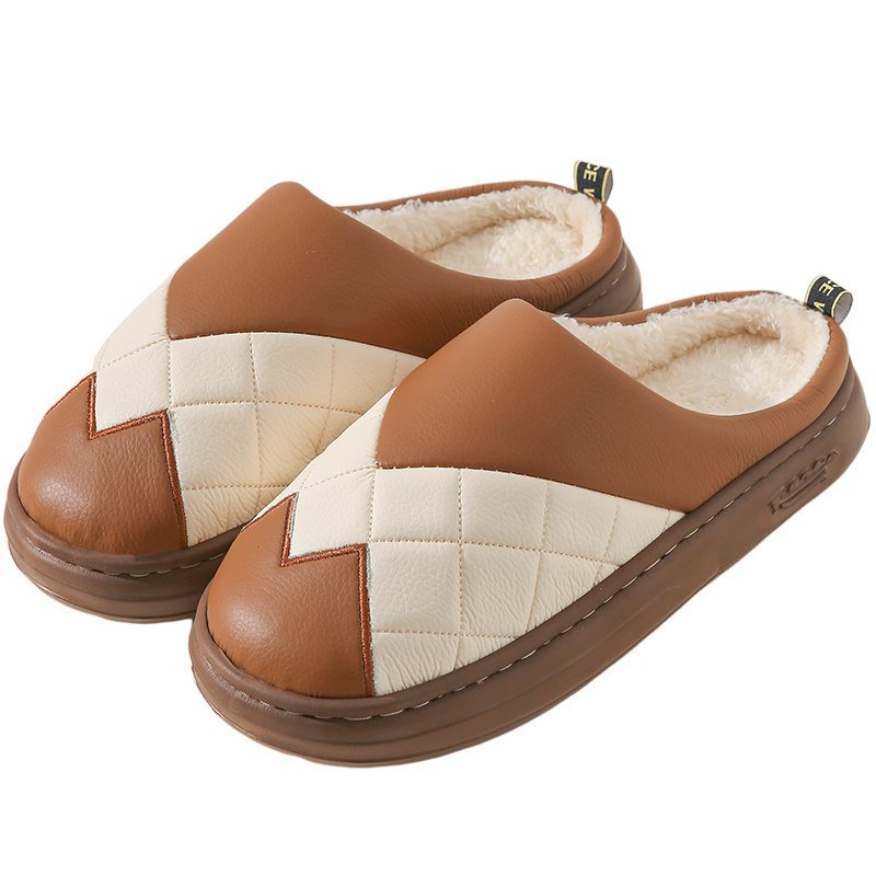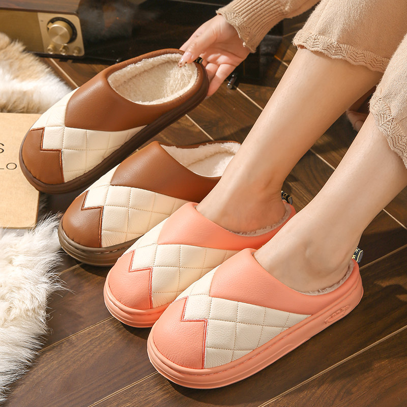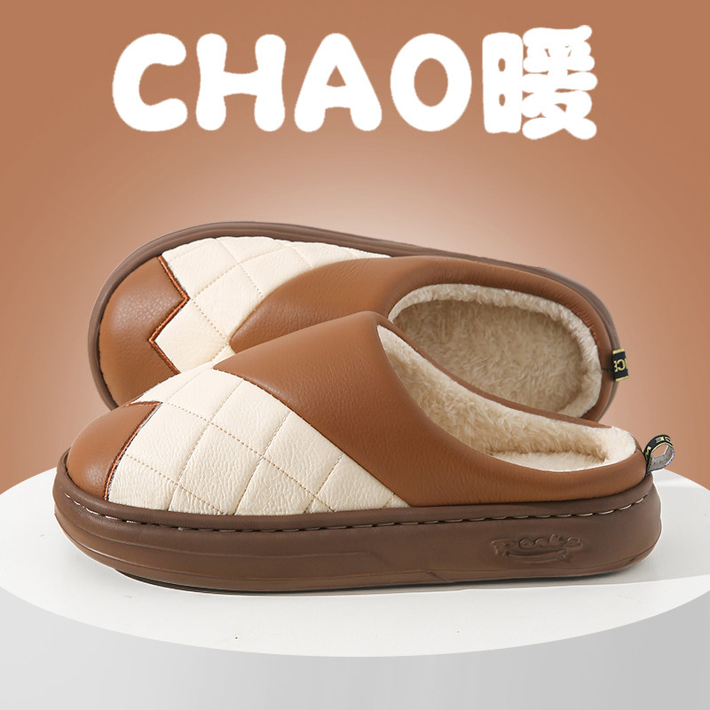 天猫PU防水棉拖鞋男秋冬季2026新款居家室内保暖毛毛绒家用情侣厚底女