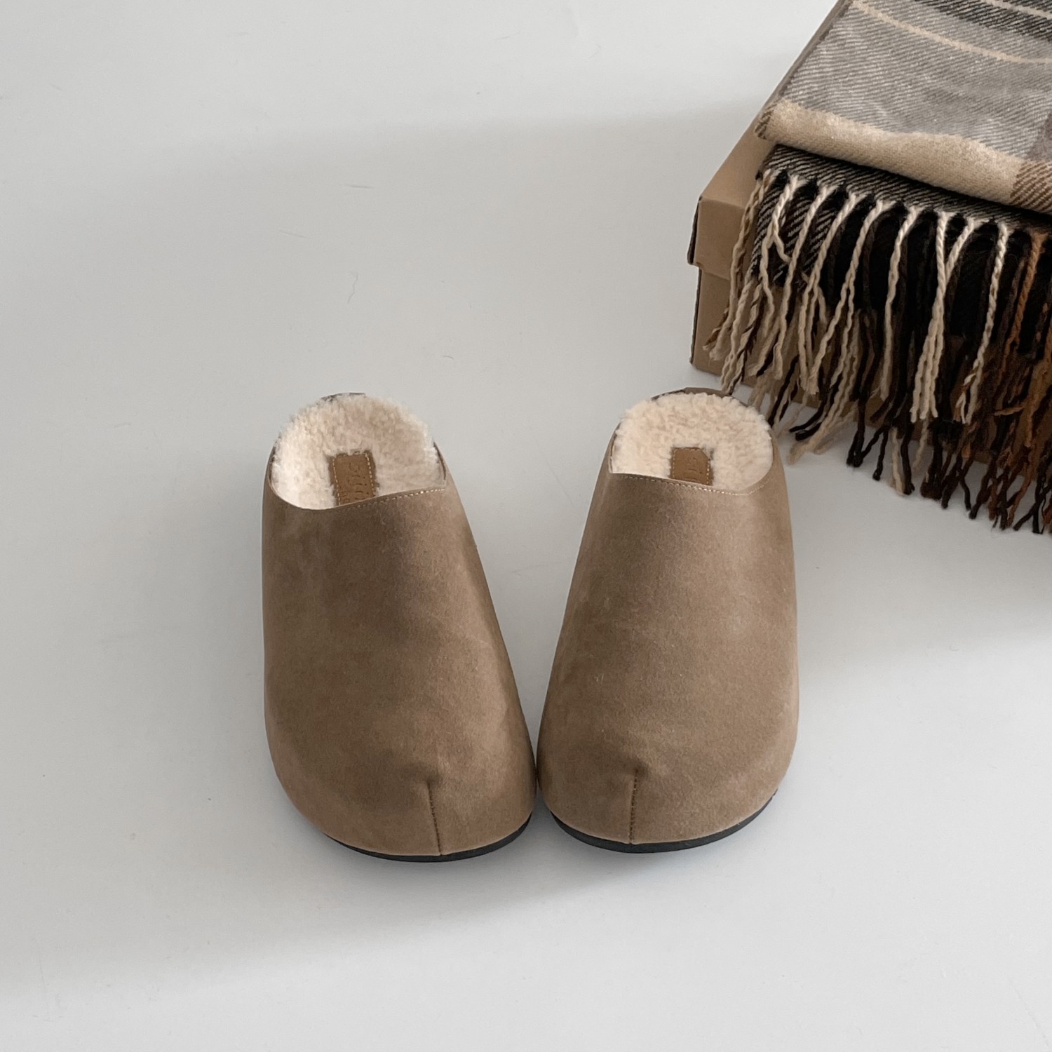 天大东dd勃肯鞋女2025秋冬新款加绒棉鞋复古毛毛女鞋一脚蹬外穿拖鞋
