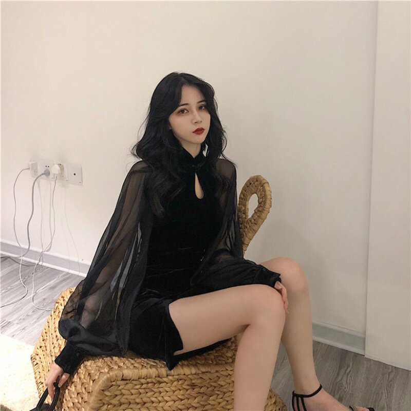 淘宝2025新款旗袍连衣裙女春秋立领灯笼袖裙子开叉收腰显瘦性感包臀裙