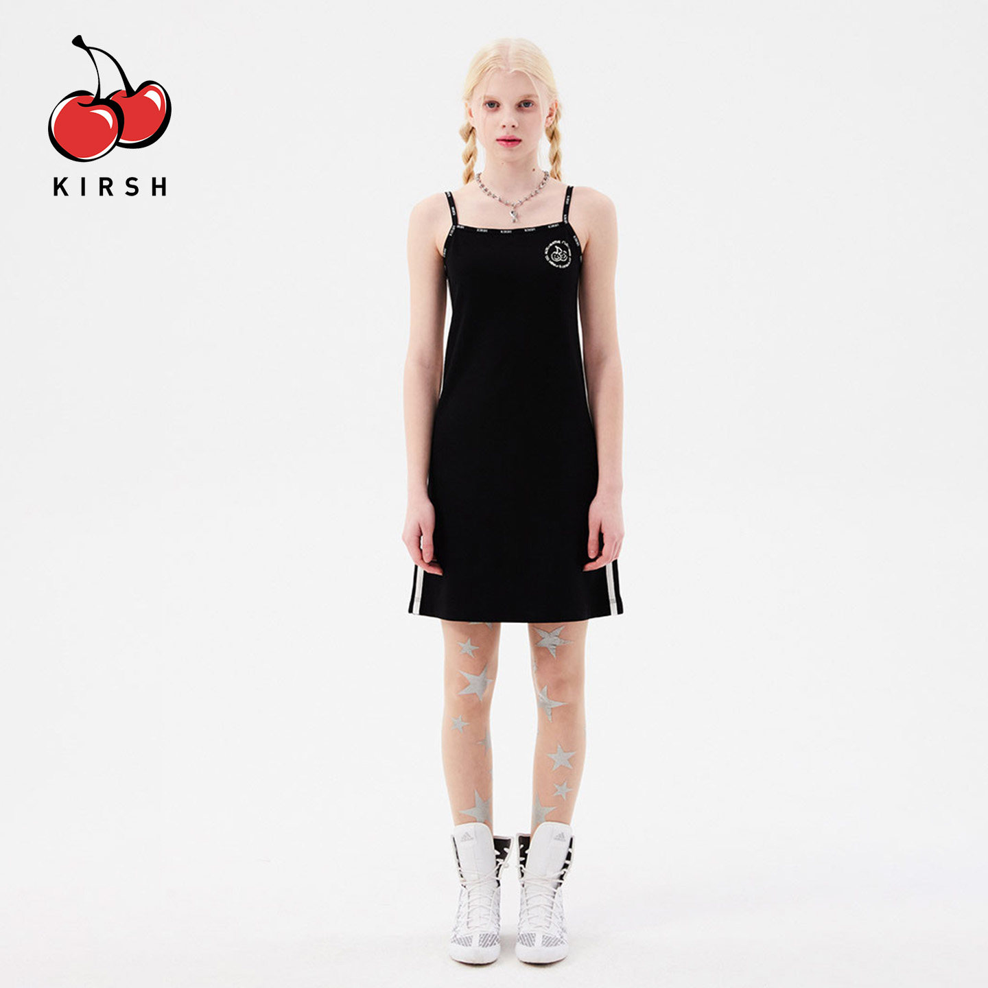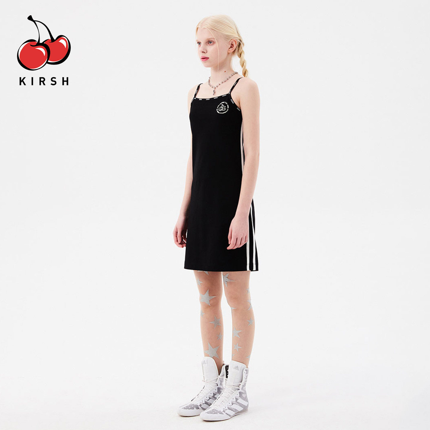 Kirsh大樱桃印花修身吊带连衣裙,是夏季韩系少女风的必备单品。采用柔软亲肤的针织面料,贴身舒适,透气性佳,适合炎热天气。修身剪裁巧妙勾勒身形,显瘦效果显著,展现优雅曲线。胸前醒目的大樱桃印花设计,甜美俏皮,充满青春活力,极具辨识度。细肩带设计凸显锁骨与肩颈线条,增添一丝小性感。裙长适中,可单穿也可作为内搭,搭配外套或开衫皆宜。无论是日常出街、约会还是度假,都能轻松打造清新减龄的韩系少女look,是夏日衣橱的时尚亮点。