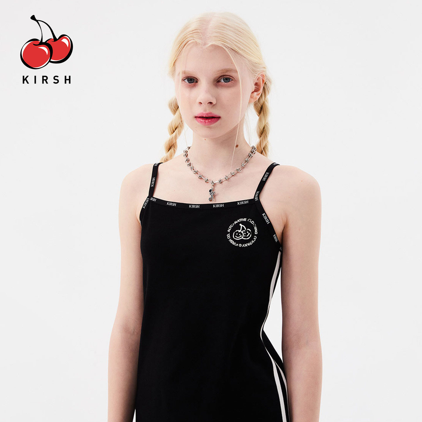 天猫kirsh大樱桃印花修身吊带连衣裙女内搭夏季韩系少女显瘦针织短裙