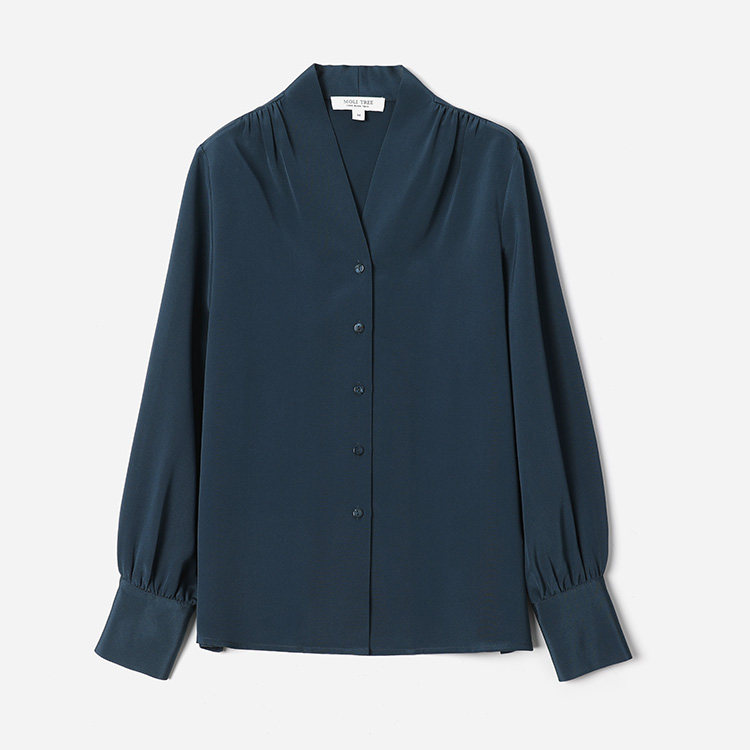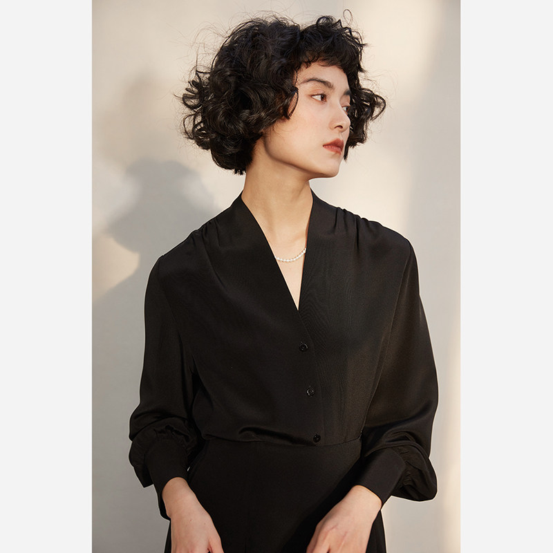 淘宝WCS05176 茉莉雅集 40姆米重绉全真丝天鹅颈衬衫V领古巴领长袖