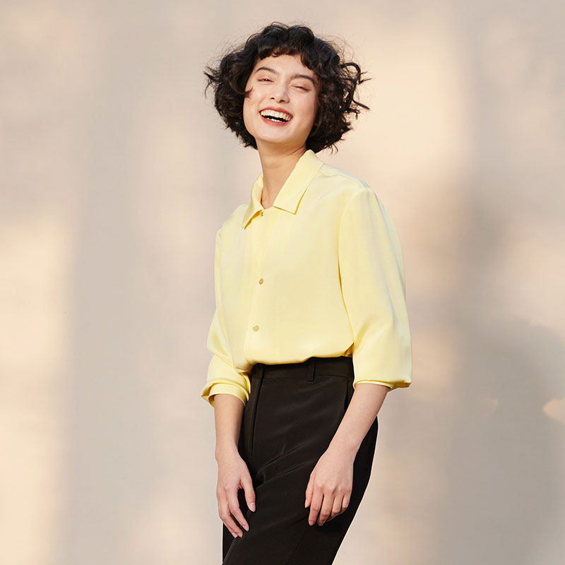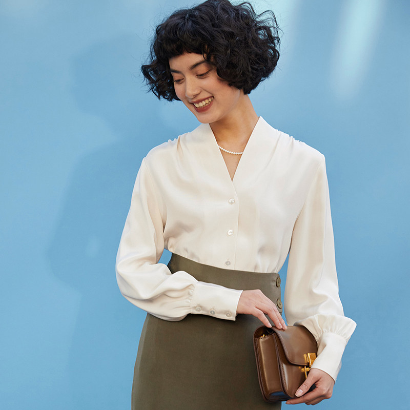 WCS05176茉莉雅集40姆米重绉全真丝天鹅颈衬衫,采用高品质40姆米重绉真丝面料,质感丰盈、垂坠顺滑,光泽自然柔和。V领与古巴领相结合的设计,巧妙修饰颈部线条,展现优雅天鹅颈气质,兼具复古与时尚感。长袖剪裁利落,袖口精致,贴合身形又不失宽松舒适。整体版型简约大气,适合通勤、约会或休闲场合,轻松搭配裙装或裤装。真丝材质亲肤透气,四季皆宜,彰显穿着者的高级品味与独特格调。茉莉雅集以匠心工艺呈现东方美学与现代设计的完美融合,是追求品质与格调女性的理想之选。