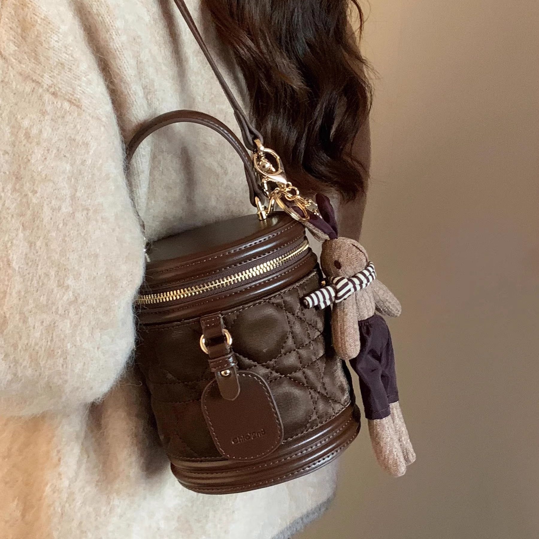 淘宝南风Chio2nd 焦糖甜茶盒子包包女高级感手提圆筒包单肩斜挎水桶包