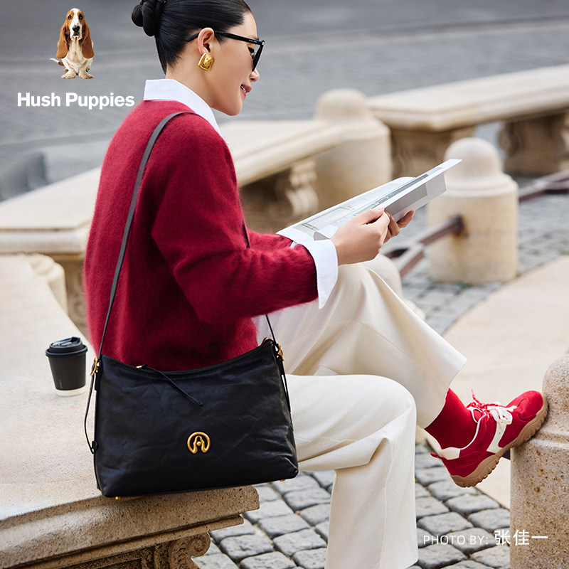 天猫暇步士女包2026新款植鞣羊皮hobo包大容量腋下单肩斜挎包女通勤包