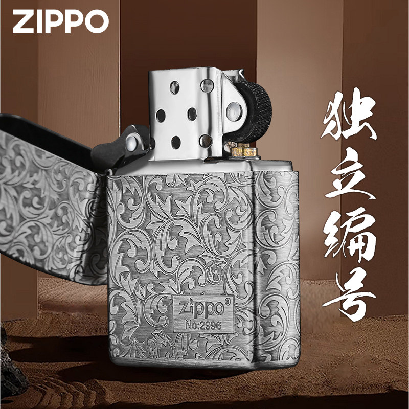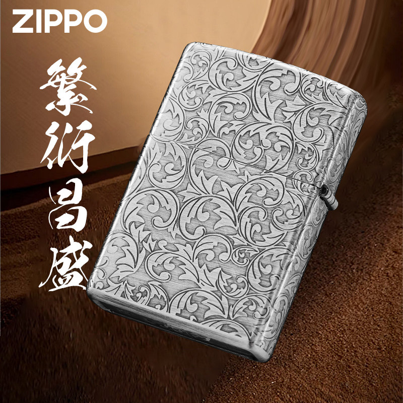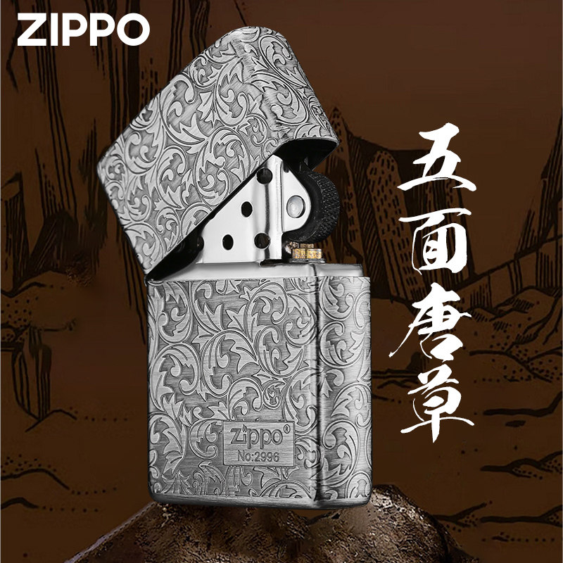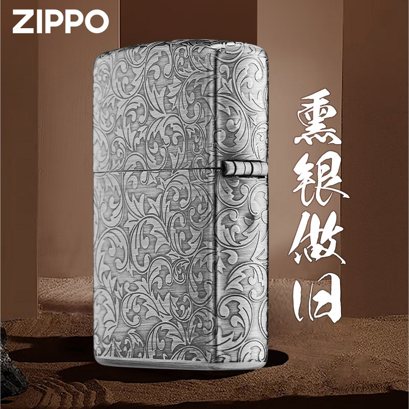 天猫Zippo正品打火机 五面唐草熏银雕刻官方旗舰店防风新年送男友礼物
