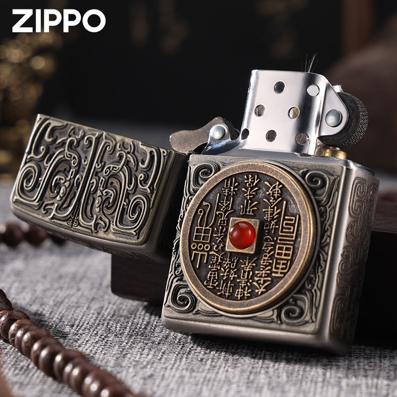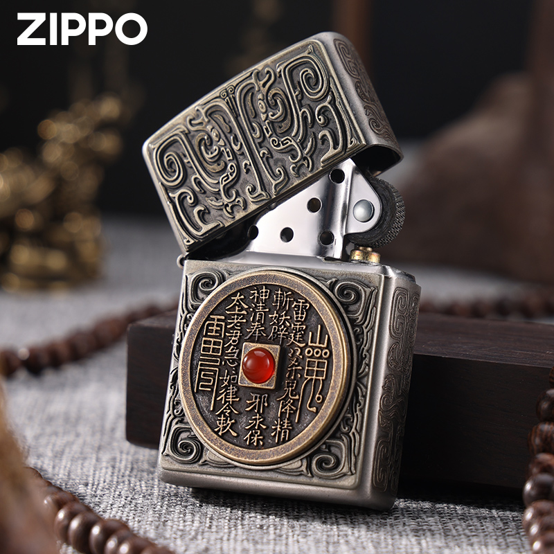天猫Zippo山鬼花钱打火机 芝宝正品官方旗舰店防风煤油新年送男友礼物