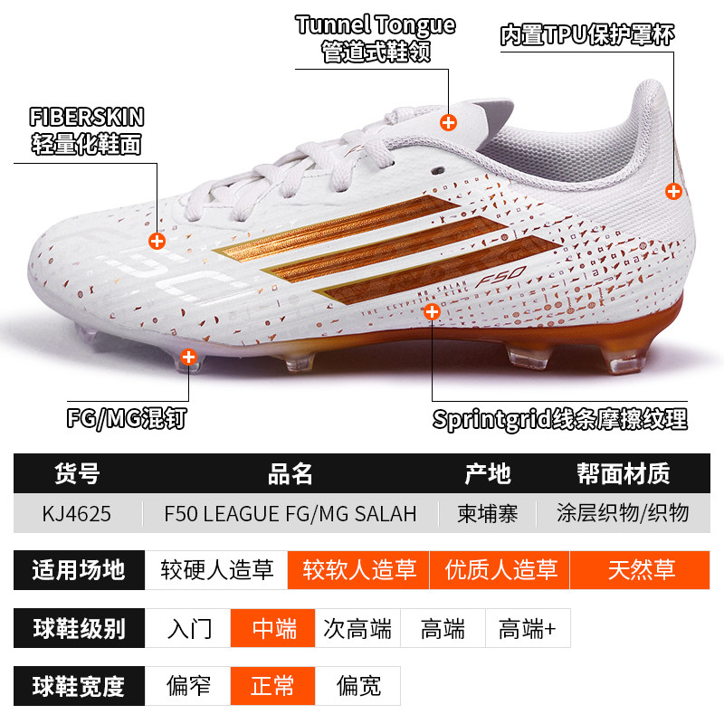天猫酷锐足球阿迪达斯F50中端FG/MG混钉人草萨拉赫训练足球鞋男KJ4625