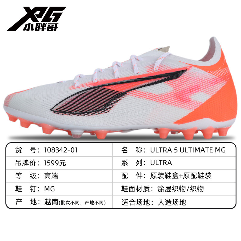 小胖哥Puma彪马ULTRAULTIMATE高端MG人草短钉低帮成人足球鞋,专为追求速度与爆发力的球员打造。采用轻量化鞋面设计,融合高性能织物与热熔膜技术,提供卓越贴合感与触球反馈。MG多地形短钉底搭配低帮剪裁,增强脚踝灵活性与场地适应性,适合人造草场地。鞋身融入彪马标志性流线型设计,兼具时尚与功能性。中底缓震科技有效提升舒适度与能量回弹,助力快速启动与急停变向。男女同款设计,满足不同脚型需求,是业余及进阶球员提升场上表现的优选战靴。
