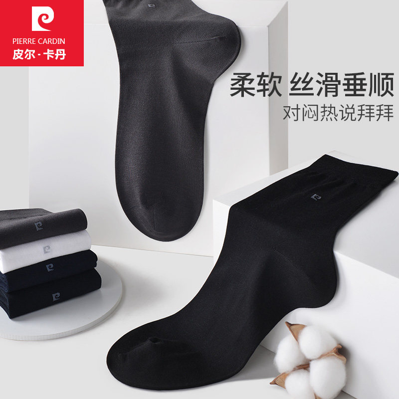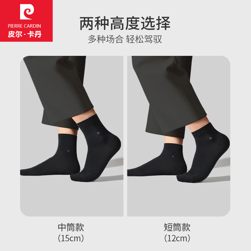 天猫皮尔卡丹男袜夏季薄款纯棉中筒防臭吸湿排汗全棉商务黑色短筒袜子