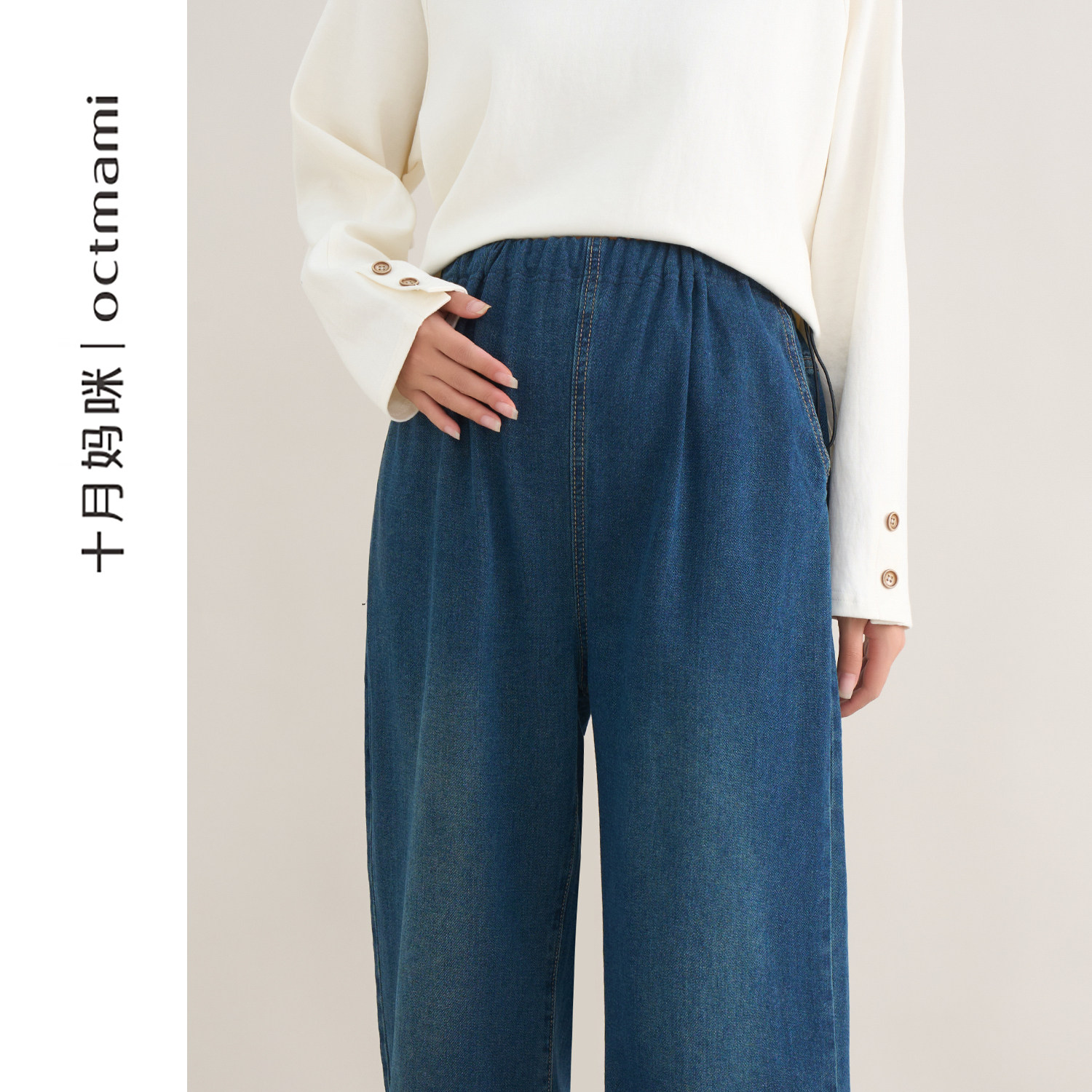 十月妈咪2026新款孕妇牛仔裤,专为孕期女性贴心设计,兼顾舒适与时尚。采用高弹柔软面料,亲肤透气,适应孕肚变化。独特腰侧弹力抽绳设计,可自由调节松紧,不勒腹部,从孕早期穿到产后。宽松阔腿版型,修饰腿型,行走自在,适合春秋外穿。高腰托腹设计有效承托腹部,缓解腰部压力。简约百搭的剪裁,轻松搭配上衣,展现孕妈优雅气质。无论是日常出行还是休闲聚会,都能舒适自在,做自信美丽的准妈妈。十月妈咪,用专业呵护每一刻孕期时光。