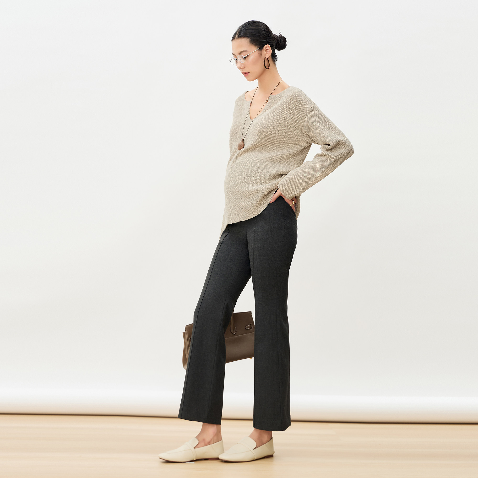 淘MASANON孕妇裤子春装新款孕期不勒肚子长裤小个子微喇叭裤春外穿