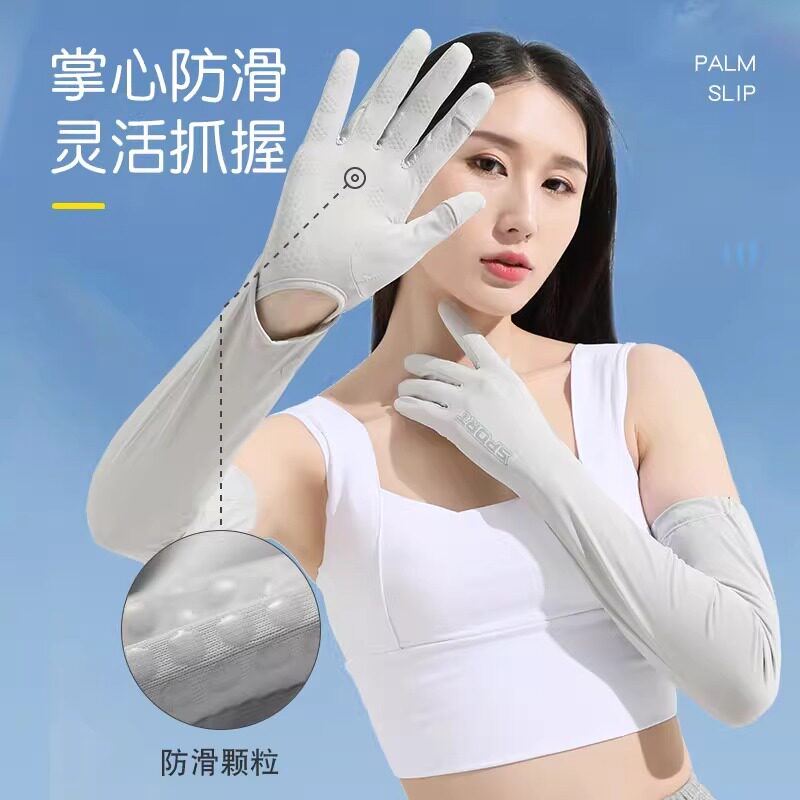 天猫安尼欧冰丝长款防晒手套女夏防紫外线开车防滑骑行薄款袖套可触屏