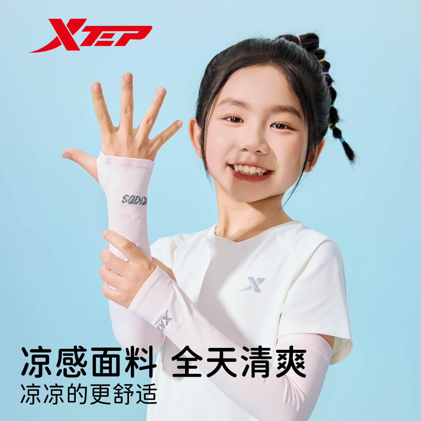 天猫特步防晒袖套儿童专用夏季户外跑步运动防紫外线冰丝透气亲肤冰袖