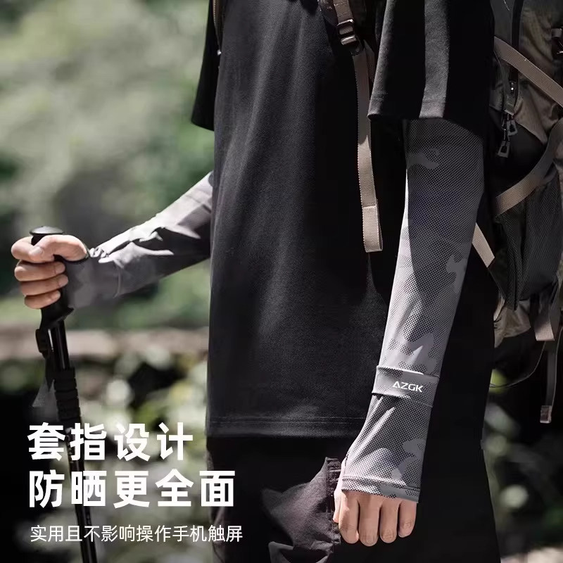 天猫啄木鸟宽松冰袖男士夏季户外钓鱼加大护手臂防紫外线冰丝防晒袖套