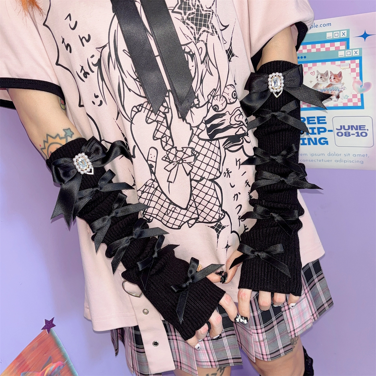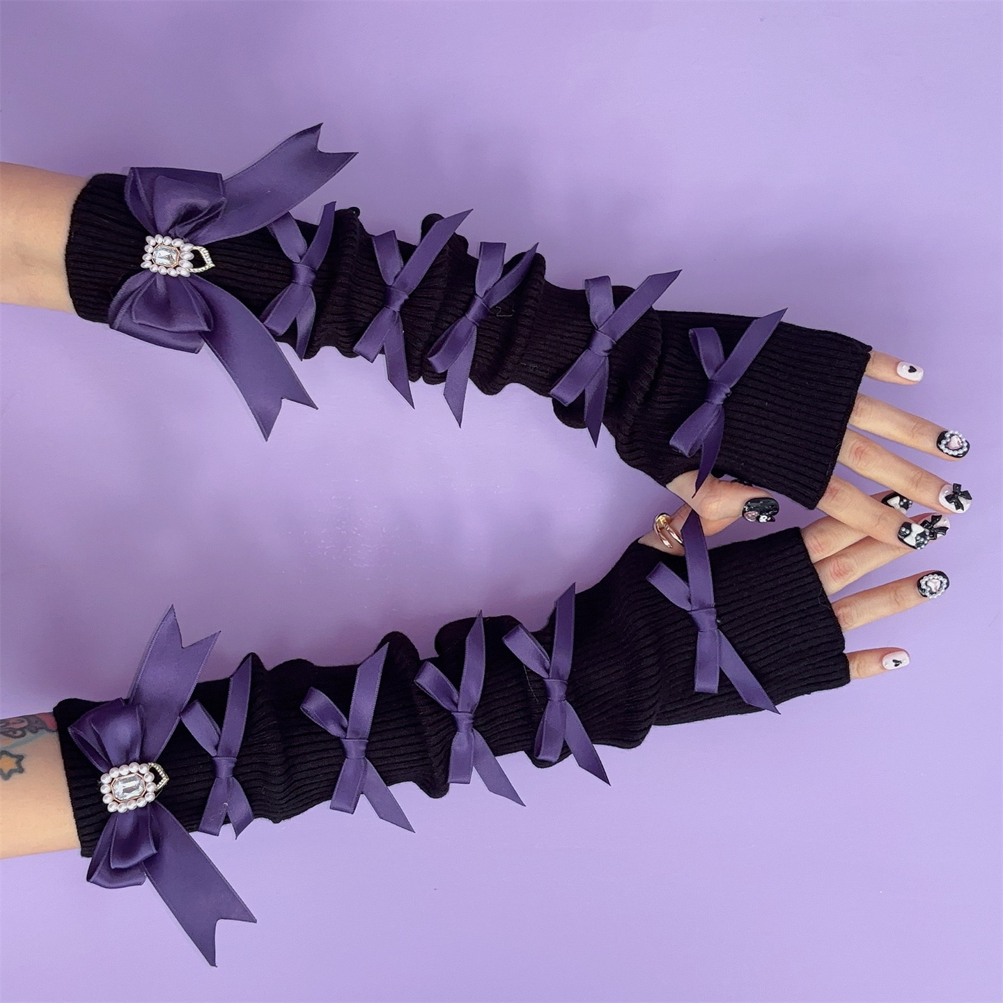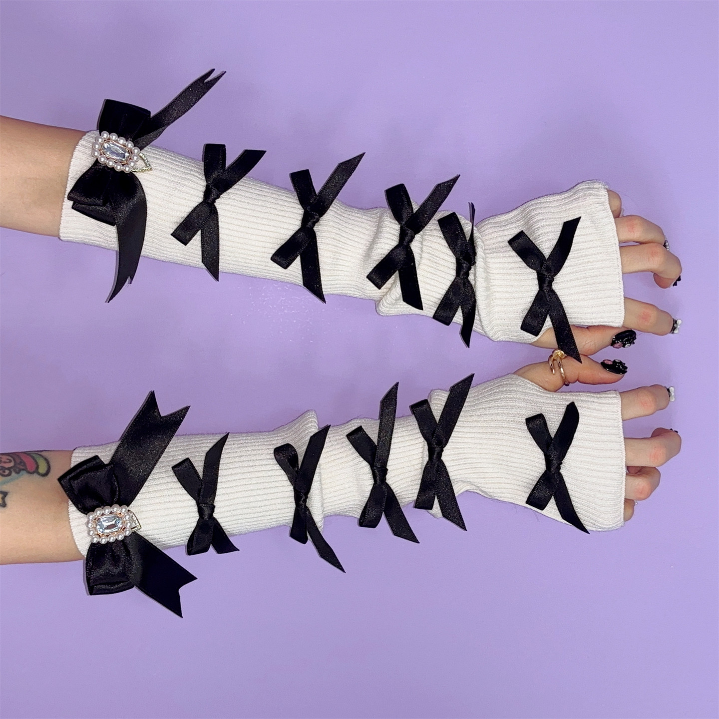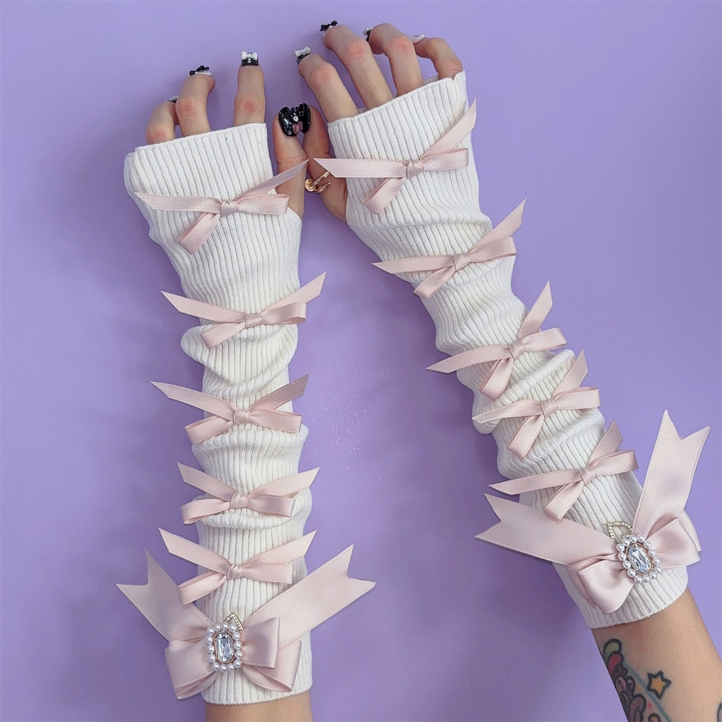 这款日系蕾蕾风蝴蝶结针织袖套,融合原宿亚比文化与甜美少女元素,采用轻盈透气的针织面料,兼具防晒与时尚功能。精致蕾丝花边搭配立体蝴蝶结装饰,细节满满,彰显小众Cos风格。袖口贴合手腕,不紧绷不滑落,适合日常穿搭、动漫展或主题拍摄。无论是搭配连衣裙、制服,还是作为Cosplay配饰,都能瞬间提升整体造型的甜美与个性感。专为追求独特审美的少女设计,是夏日防晒与风格表达的完美选择,展现温柔又不失叛逆的亚文化态度。