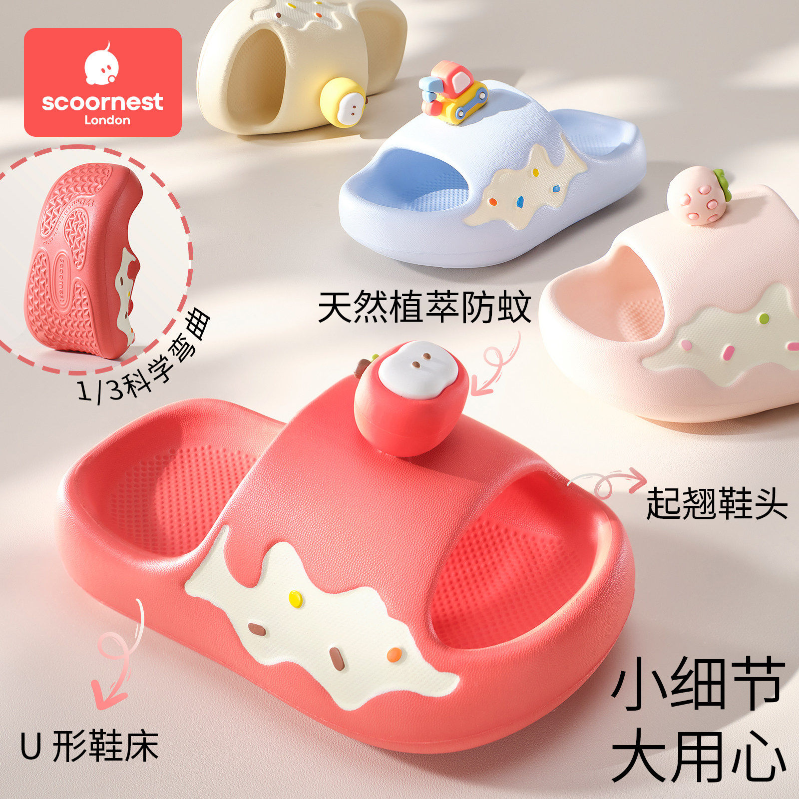 天猫科巢儿童凉拖鞋软底男童夏季户外宝宝洗澡防滑家居室内拖鞋女童