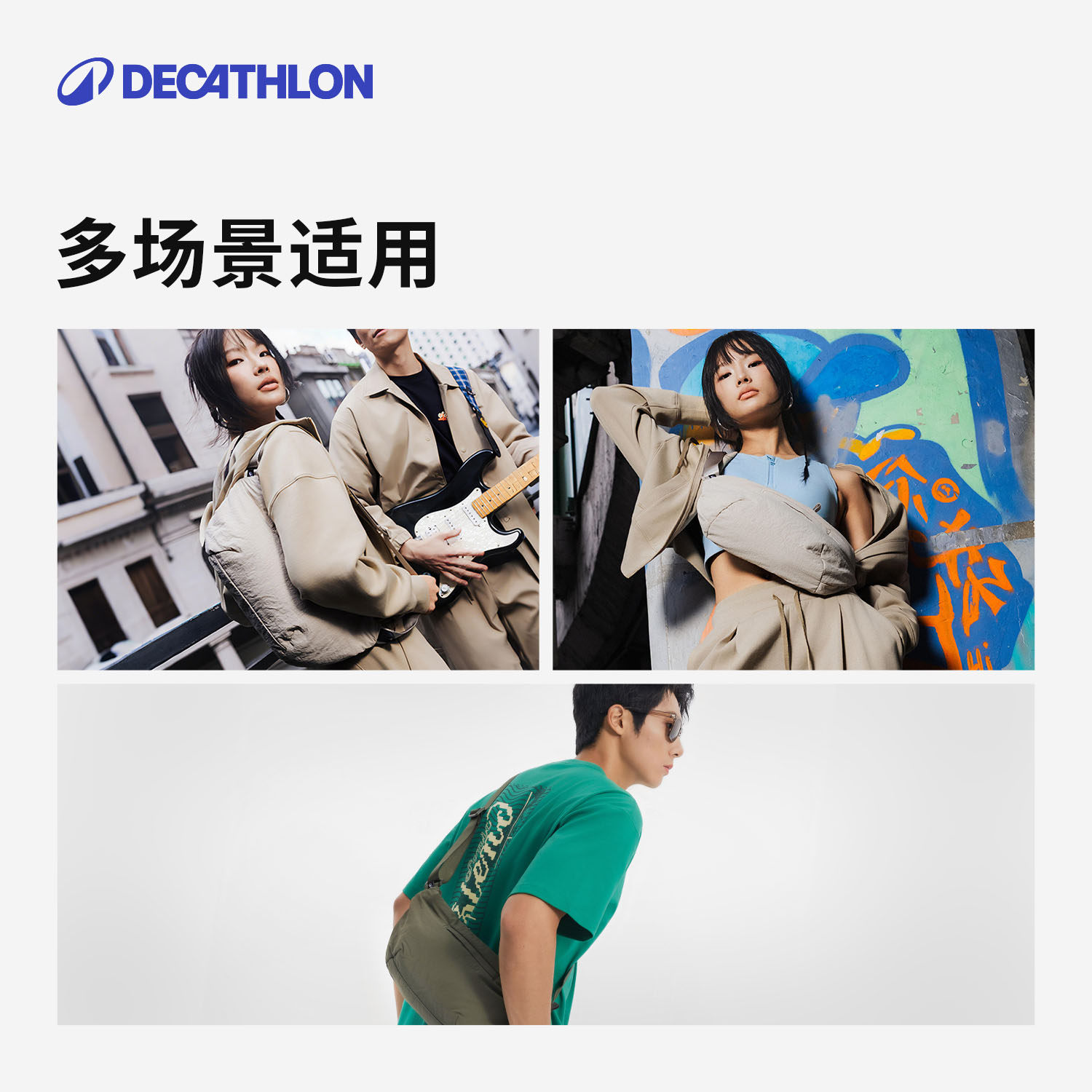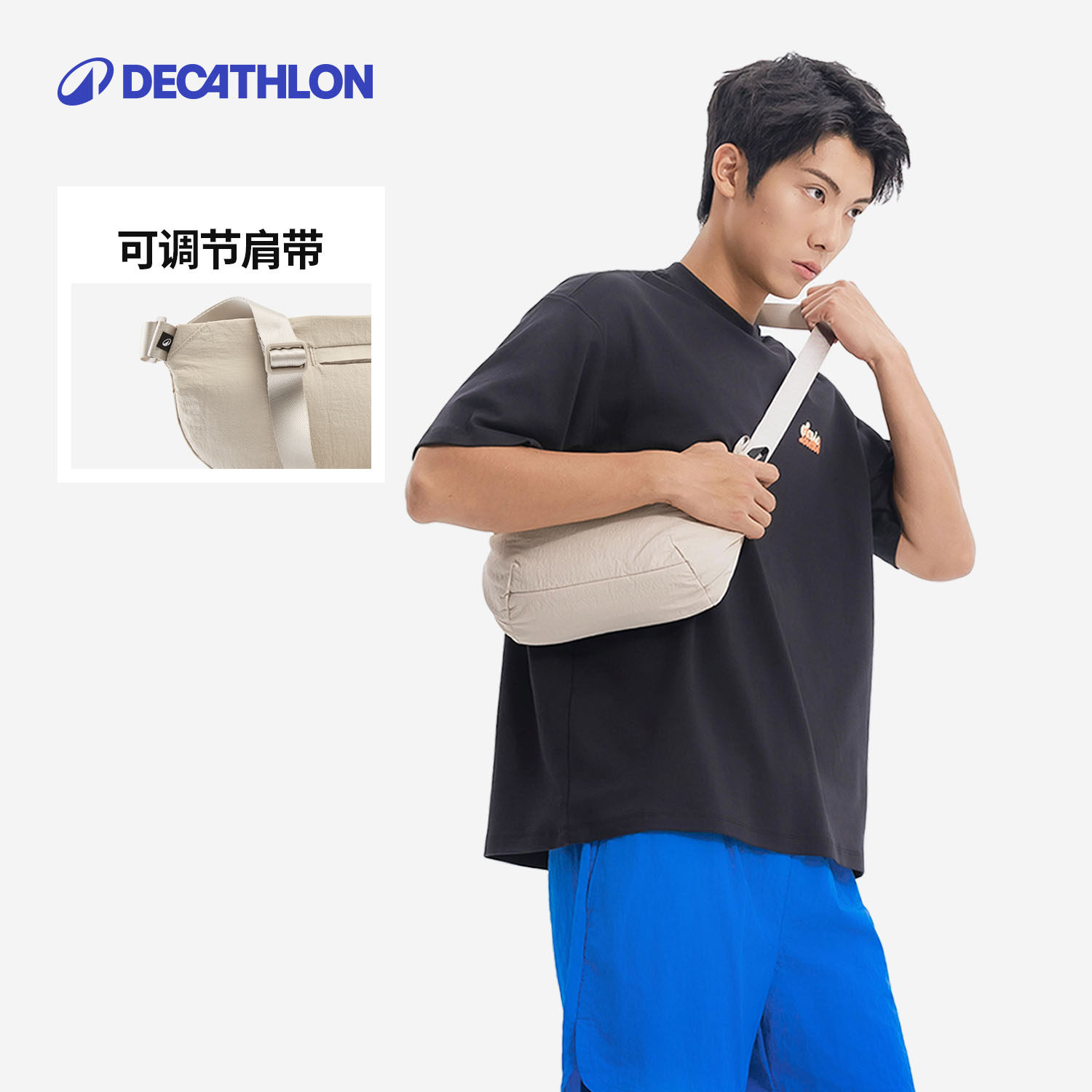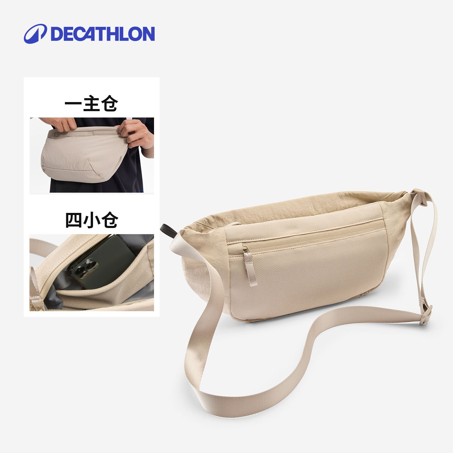 天猫迪卡侬运动胸包男大容量手机腰包女健身跑步多功能休闲邮差包END4