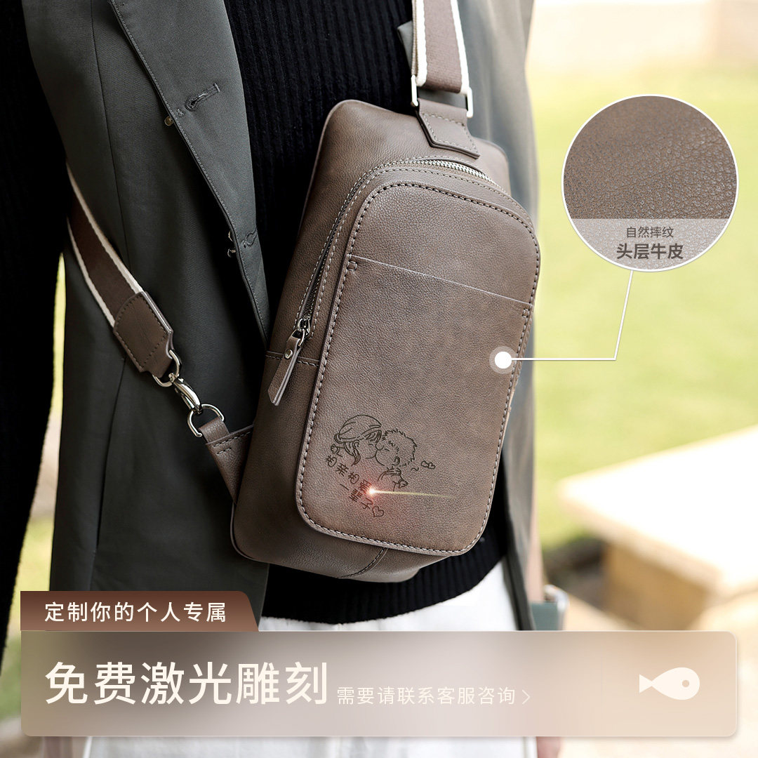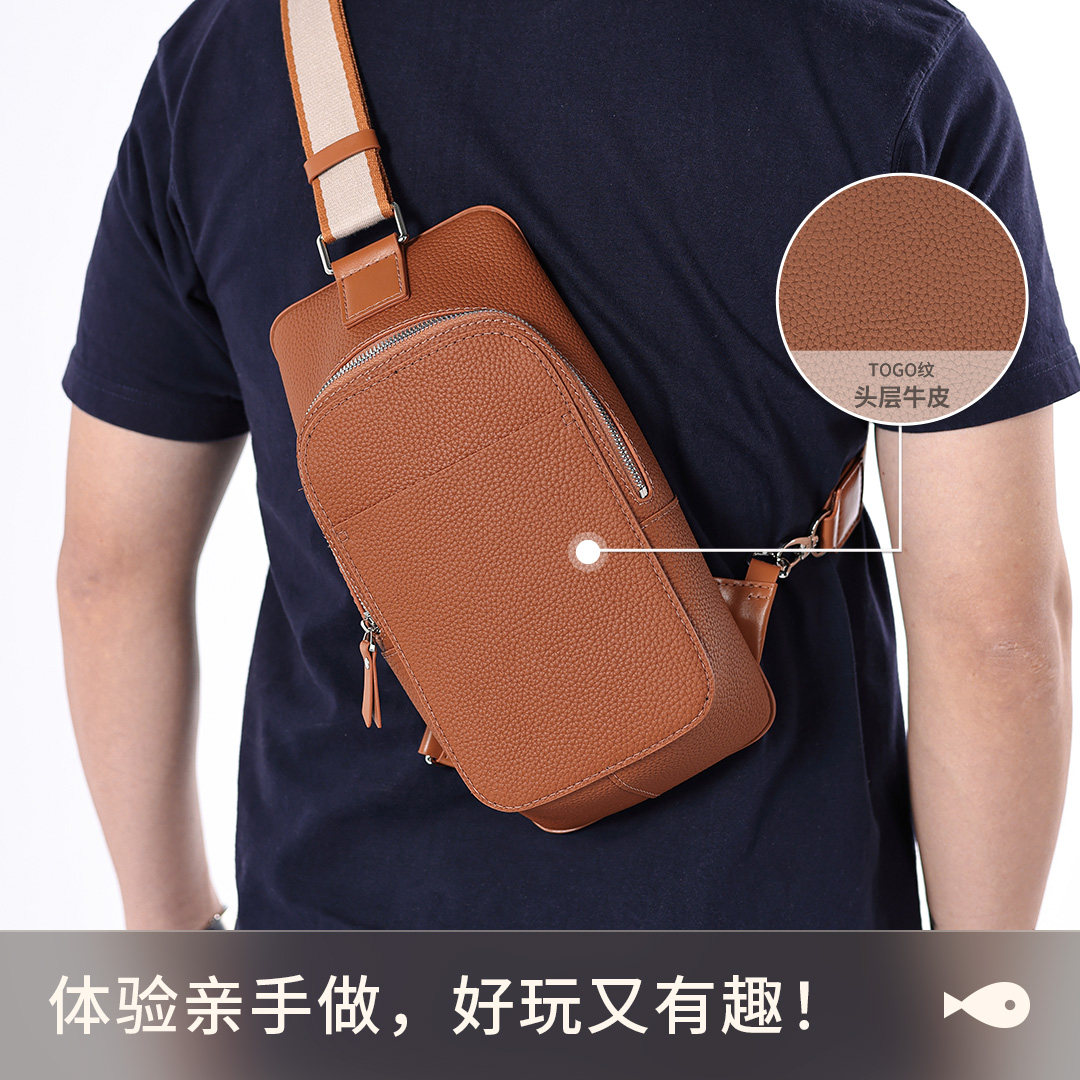 天猫蠢小鱼diy手工男士腰包送男友老公生日礼物真牛皮胸包斜挎材料包