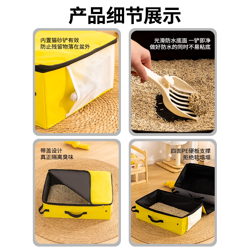 这款超大号折叠便携式猫砂盆,专为外出、旅行或车载使用设计,空间宽敞,适合各年龄段猫咪,尤其适合幼猫和体型较大的成年猫。采用环保防水材质,结实耐用,边缘加高防漏砂设计,保持环境整洁。折叠后仅几厘米厚,轻巧便携,可轻松放入背包或后备箱,随时随地为猫咪提供私密如厕空间。底部防滑处理,使用更稳固。清洁方便,一冲即净,是养猫家庭的出行必备神器。无论是短途郊游、长途自驾,还是临时寄养,都能让猫咪舒适如厕,主人省心省力。